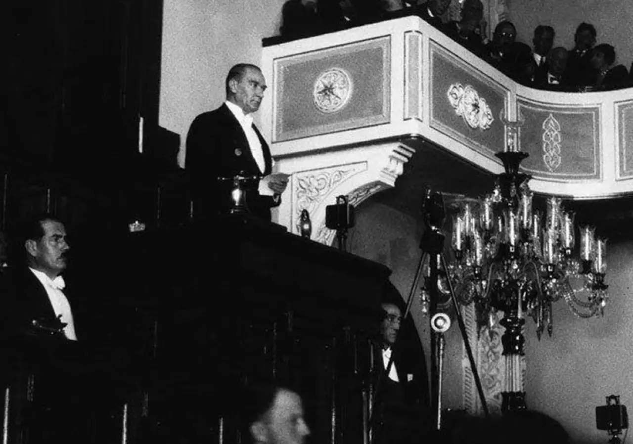 1923- Mustafa Kemal Paşa, TBMM'nin yeni çalışma dönemini açtı. Mustafa Kemal'in açılış konuşmasını mecliste dinleyiciler balkonundan izleyen Latife Hanım, meclise gelen ilk kadın oldu.