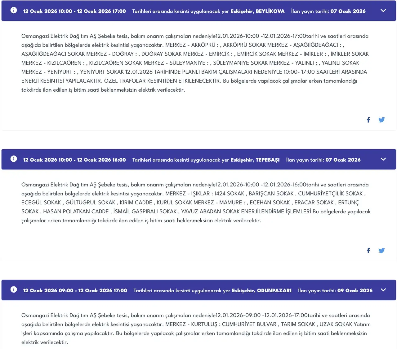 OEDAŞ, elektrik kesintilerinin önceden duyurulması ve vatandaşların mağduriyet yaşamaması adına detaylı bilgilendirme yapmaktadır.