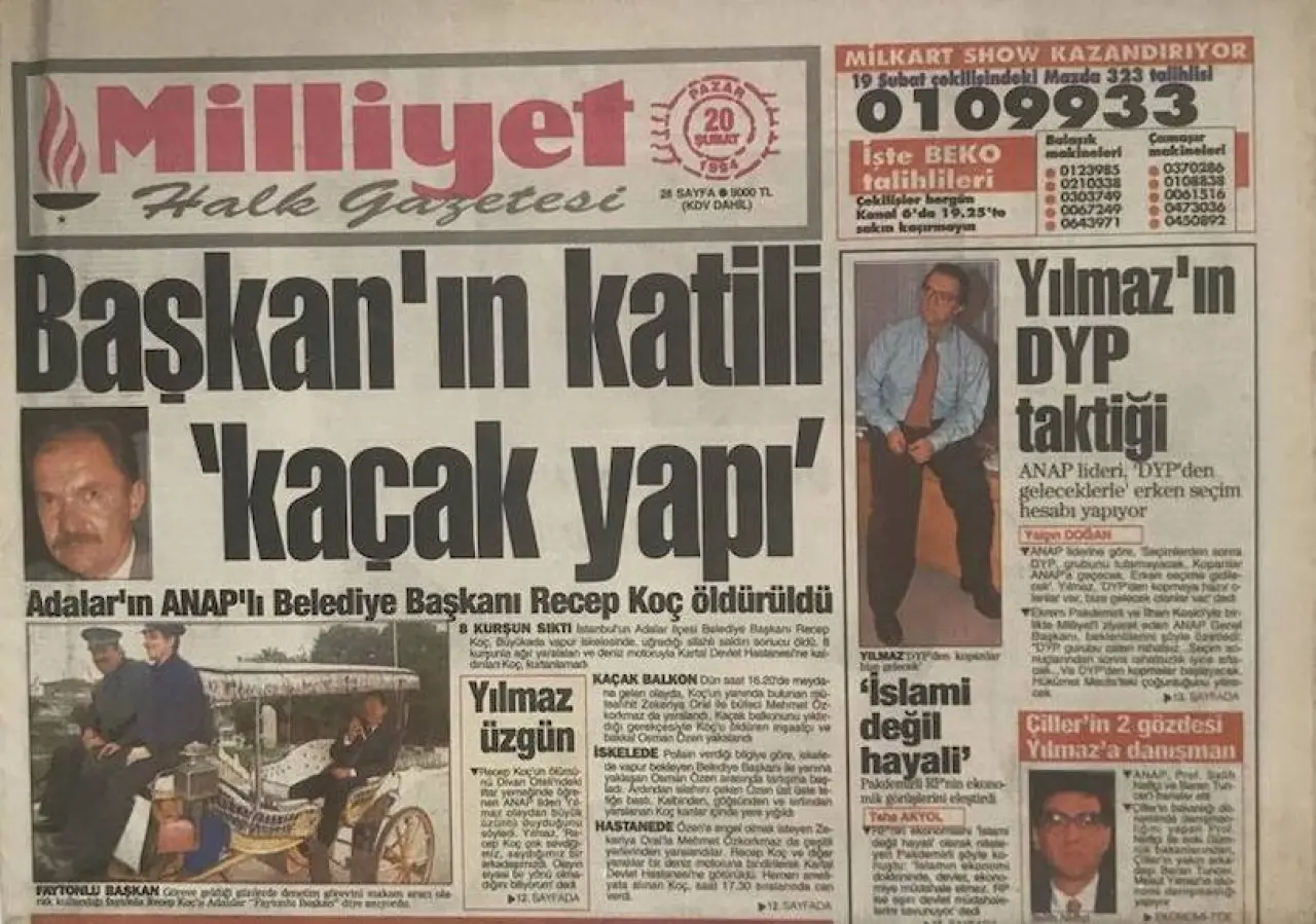 1994- Adalar Belediye Başkanı ANAP'lı Recep Koç Büyükada vapur iskelesinde uğradığı silahlı saldırıda öldürüldü. İki kişi de yaralandı. Recep Koç'u, kaçak yapısını yıktırdığı Osman Özgen adlı bir vatandaşın öldürdüğü bildirildi.