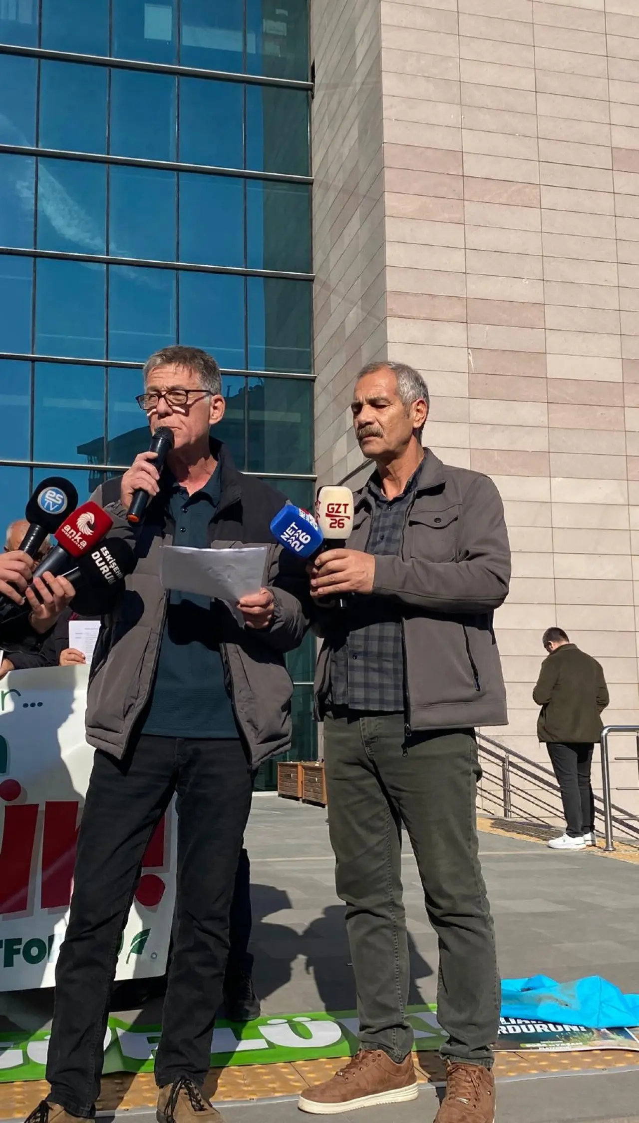 Eskişehir Doğa ve Yaşam Platformu üyesi olan Osman Uğur Özveren platform adına söz alarak şu cümlelere yer verdi: “Bugün, daha önce defalarca basın açıklaması yaptığımız hukuka aykırı avlanmalarla ilgili yeniden suç duyurusunda bulunmak üzere Adalet Sarayı önündeyiz. Doğal yaşam alanında yaşayan, nesli hızla tükenen ve koruma altında bulunan kızıl geyiklerin ve Anadolu yaban koyunlarının, parasal bir rant uğruna avlanması kamu düzenine açıkça aykırıdır.”