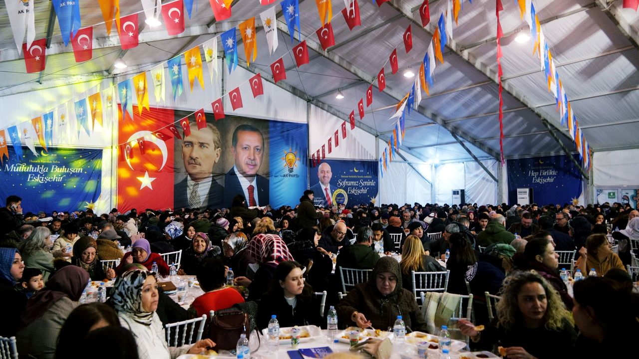 AK Parti Eskişehir İl Başkanlığı tarafından Dede Korkut Parkı’nda kurulan iftar çadırı, Ramazan ayının ilk günlerinden itibaren yoğun katılımla gerçekleştiriliyor. “Soframız Seninle Eskişehir” sloganıyla düzenlenen iftar programında artan talep üzerine çadır sayısı ve kapasite artırıldı.