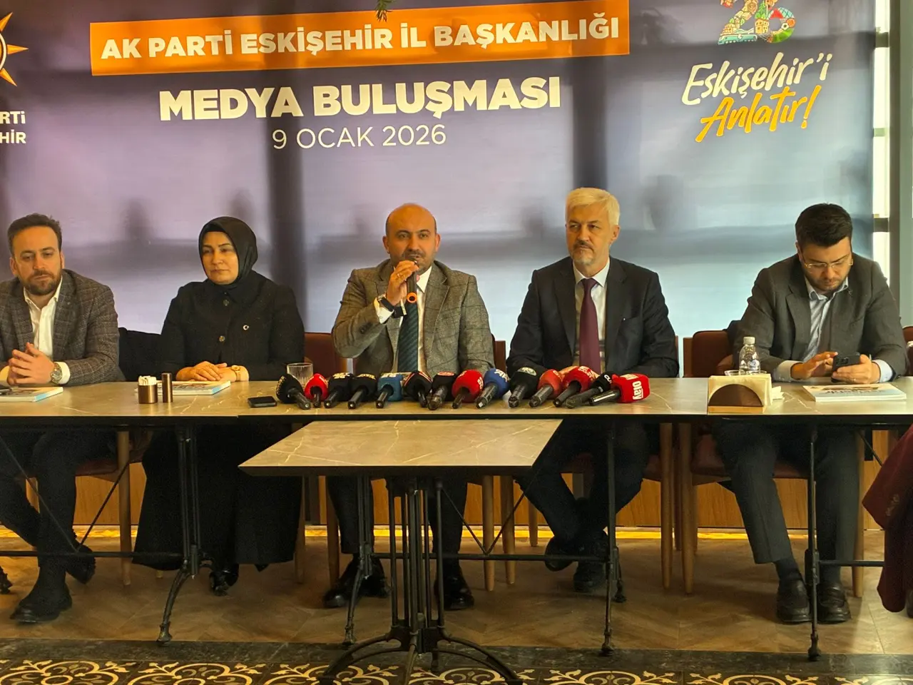AK Parti Eskişehir İl Başkanlığı olarak 170 sayfalık 2025 Faaliyet Raporu hazırladıklarını aktaran Albayrak, raporda altyapı, ulaşım ve konut projelerinin yer aldığını söyledi. Hasanbey Lojistik Merkezi bağlantı yolları, Alpu yolu ikinci etap, Kırka yolu ve Kalabak-Seyitgazi hattındaki projelerin yakından takip edildiğini belirten Albayrak, 2026 ve 2027 yıllarında bu yolların tamamlanmasının hedeflendiğini ifade etti.