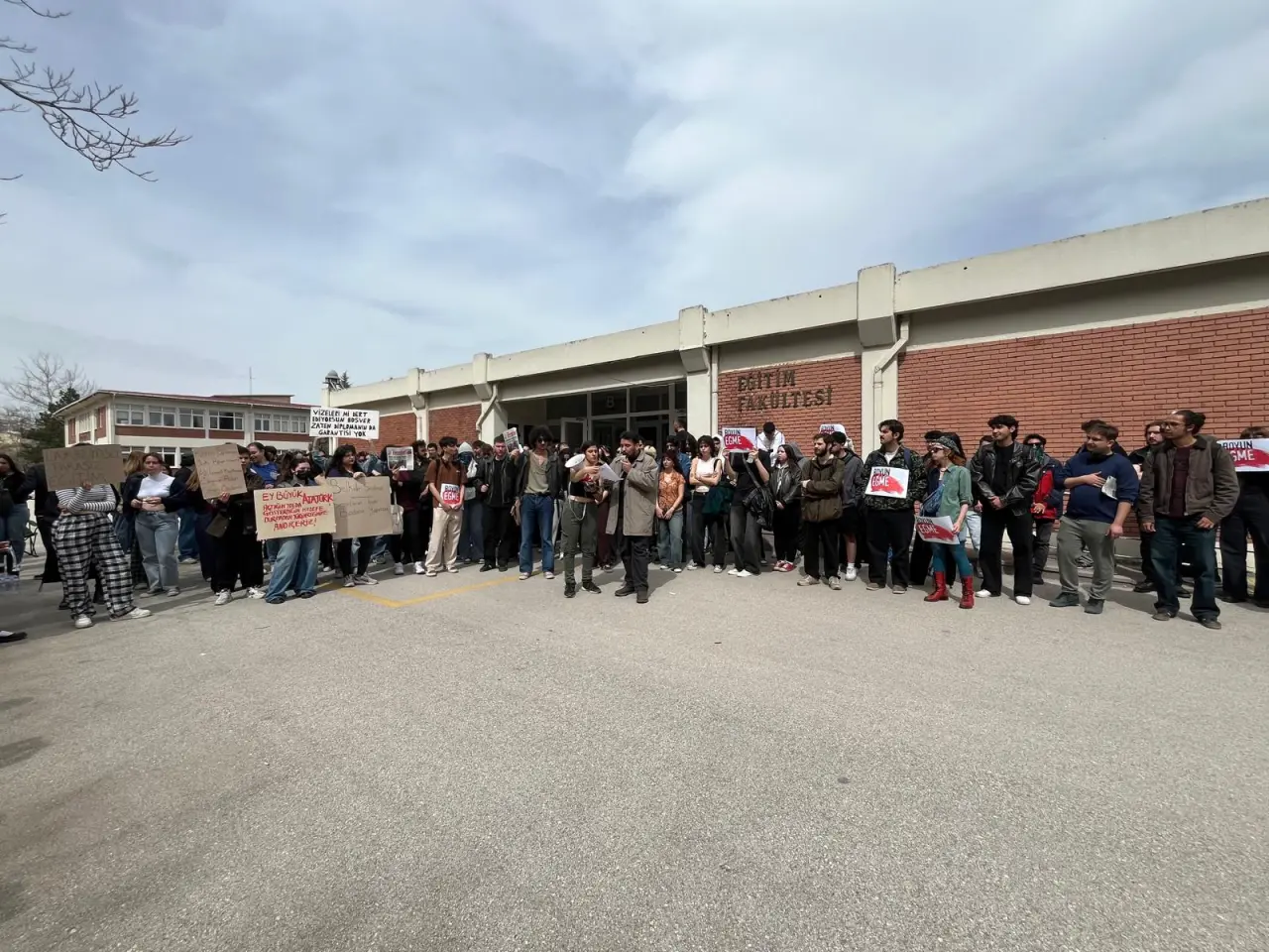 Öğrenciler adına açıklama yapan Orhan Yüksel, “Son günlerde yaşananlara, zorbalıklara ve halkın seçme ve seçilme hakkına yönelik saldırılara karşı sessiz kalmıyoruz. Dersleri boykot ediyoruz!” ifadelerini kullandı. Yüksel, akademisyenlere de çağrı yaparak derslere ara verilmesini ve boykota destek olunmasını talep etti.