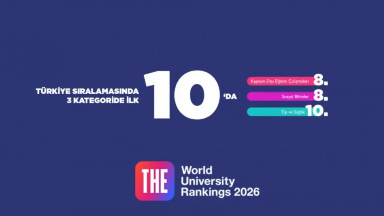 THE 2026 Konulara Göre Türkiye sıralamalarında ise Anadolu Üniversitesi, Kapsam Dışı Eğitim Çalışmaları alanında 44 üniversite arasından 8’inci sırada yer alırken, Sosyal Bilimler alanında 36 üniversite arasında yine 8’inci oldu. İşletme ve Ekonomi alanında 23 üniversitenin değerlendirildiği sıralamada 11’inci sıraya yerleşen üniversite, Tıp ve Sağlık alanında ise 74 üniversite arasında 10’uncu sırada kendine yer buldu.