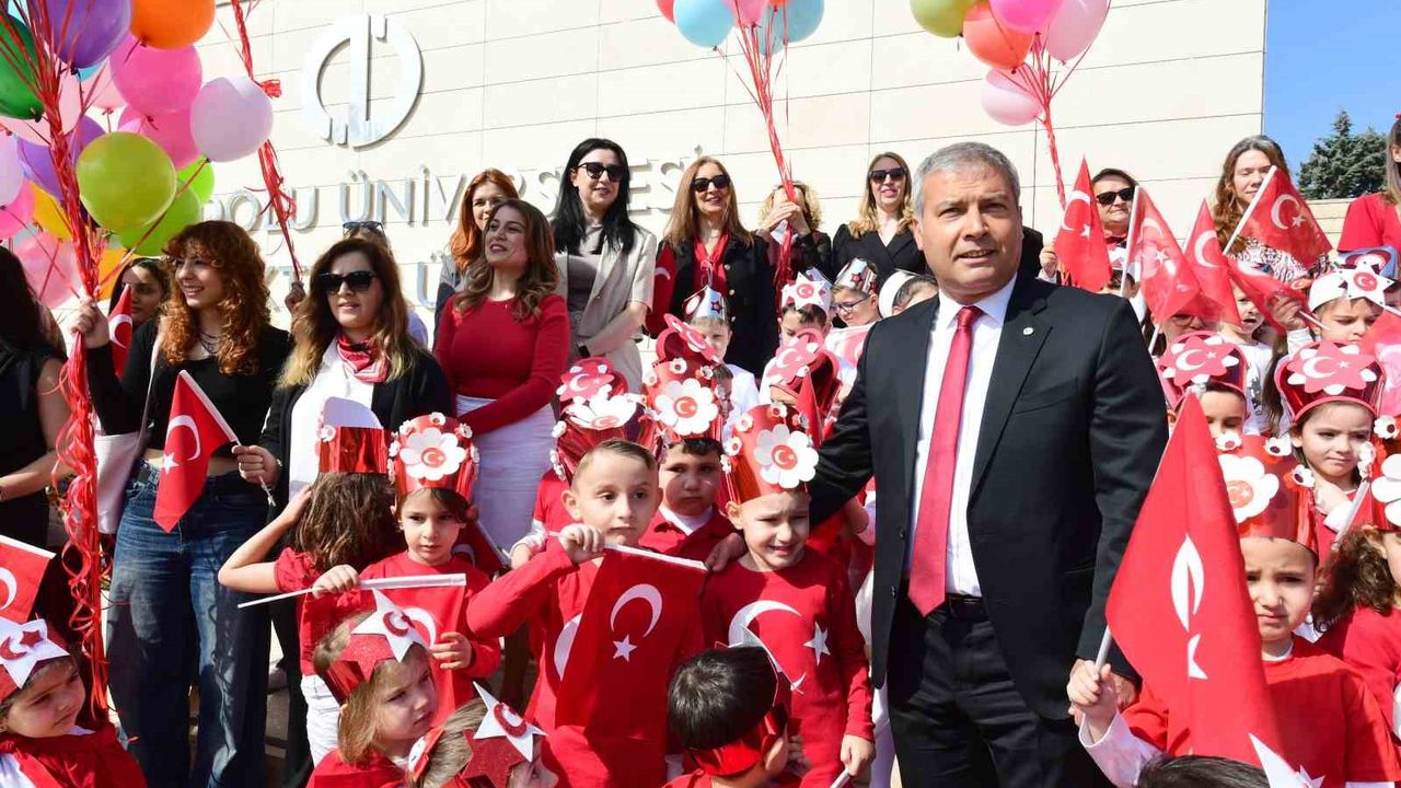 Ellerinde Türk bayrakları ve balonlarla birlikte Kreş ve Gündüz Bakımevi’nden rektörlüğe kadar yürüyen minik öğrenciler Rektörlük önünde 23 Nisan’a özel şarkılar söylediler. 100. Yıl Marşı eşliğinde balonların uçurulmasının ardından miniklerin bir diğer ziyaret noktası Anadolu Üniversitesi Senato Odası oldu. Anadolu Üniversitesi Rektörü Prof. Dr. Yusuf Adıgüzel, Rektör Yardımcıları Prof. Dr. Yusuf Özkay, Prof. Dr. Serpil Koçdar, Prof. Dr. Erkan Erdemir ve Prof. Dr. Köksal Büyük, Rektör Danışmanı Prof. Dr. Barış Kılınç, Genel Sekreter Mehmet Süleyman Ekşi çocukların 23 Nisan Ulusal Egemenlik ve Çocuk Bayramı’nı kutlayarak hediyeler dağıttı. Ardından minikler, rektörlük makamına oturarak 23 Nisan mesajlarını paylaştılar.