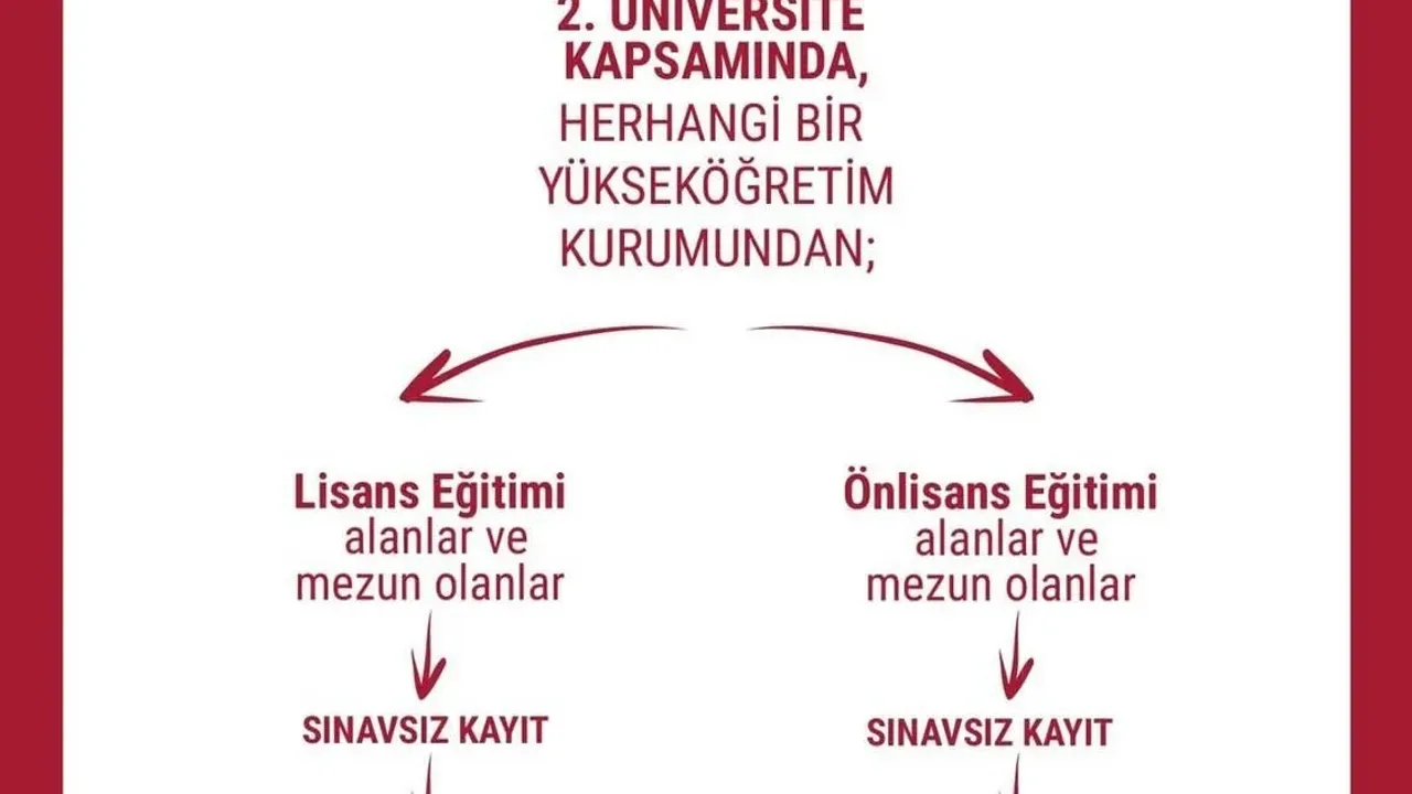- Herhangi bir yükseköğretim programından mezun olan veya halen okuyanlar (ikinci üniversite)