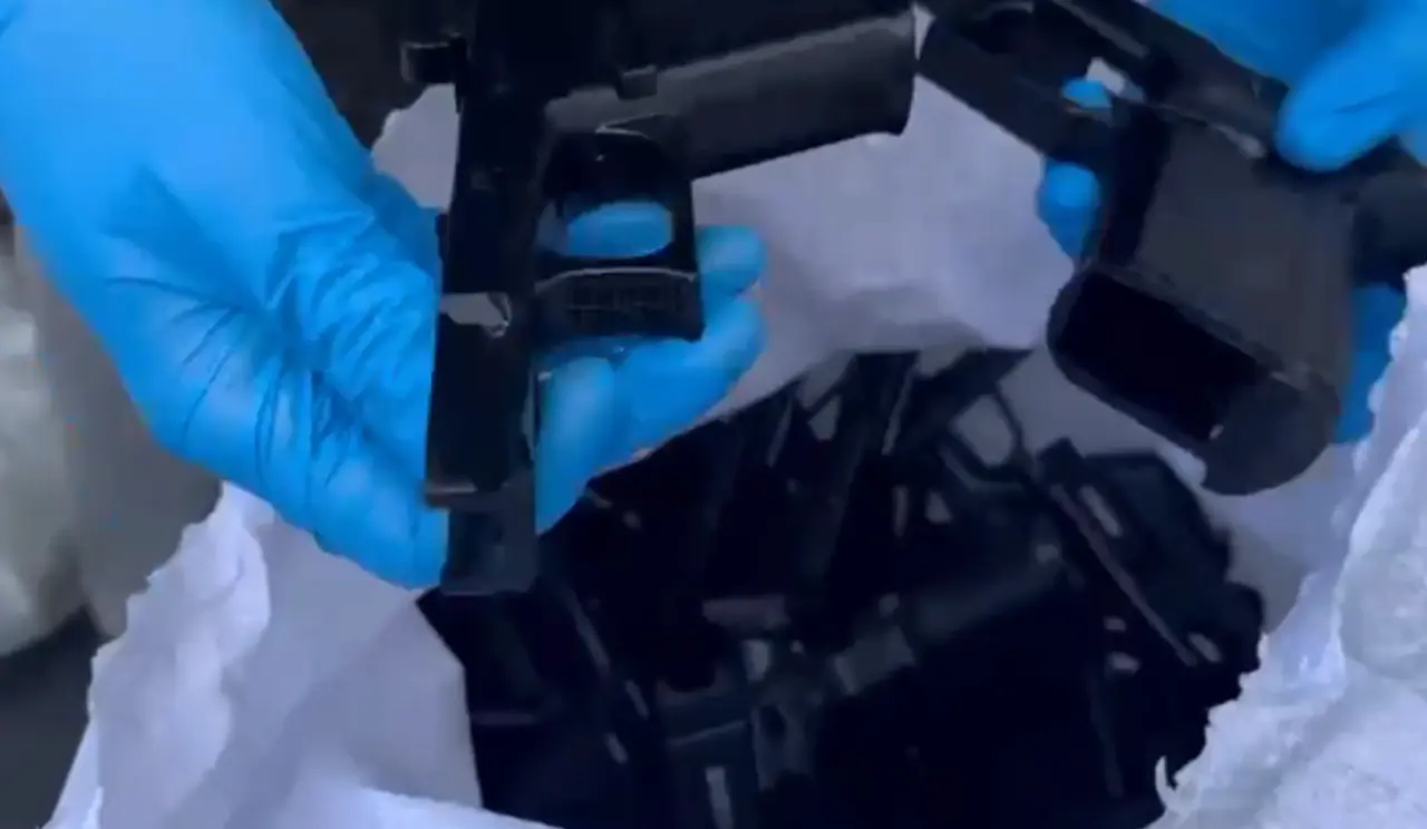 KOM ekiplerince durdurulan çekici üzerindeki araçta yapılan detaylı aramada, 480 adet parçalanmış tabanca, 518 adet namlu rampası, 491 adet silah sürgüsü, 492 adet şarjör, 488 adet namlu, 479 adet gövde, 494 adet tetik mekanizması, 469 adet icra yayı, 490 adet icra mili, 2 bin 891 adet muhtelif silah parçası ele geçirildi.