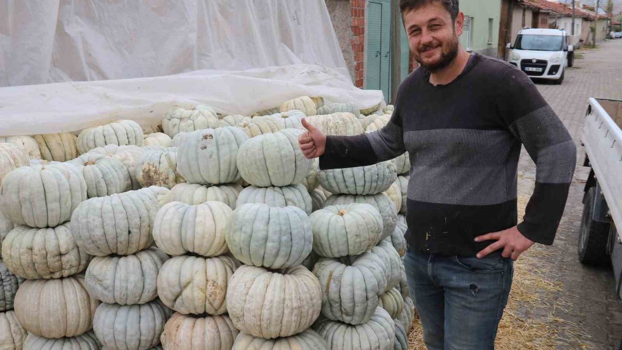 67 yaşında olan ve 55 yıldır balkabağı üreticiliği yapan Rahmi Kılıç, "Biz 55 seneden beri ata tohumu olarak ekiyoruz. Çekirdeklerini alırız, irilerinden, dilimli olanlarından ekeriz. Kestane kabağı diye geçer bizim kabağımız. Kestane şekeri nasıl oluyor, aynı onun gibi olur. Baklavadan daha iyidir bu. Organik, çok güzel tatlısı, haşhaşlısı olur. Börek ve çorba yapıyorlar. Çok çeşitler oluyor. Bu sene hava şartları çok kurak gitti, çok sıcak oldu. Fiyatlar biraz kırık. Tüccara veriyoruz kabakları. Kabakları birinci, ikinci ve üçüncü sınıf diye ayırıyoruz. Birinci sınıf İstanbul, Ankara. Sakarya’ya gider. Yıllarca bizden gitti. Şimdi marka aldık. İnşallah tescilli marka olacak. Tabii ki yüksek fiyatı istiyoruz, ama 15-20 lira arasına, hani 15’ten aşağı olmasın dedik" diye anlattı.
