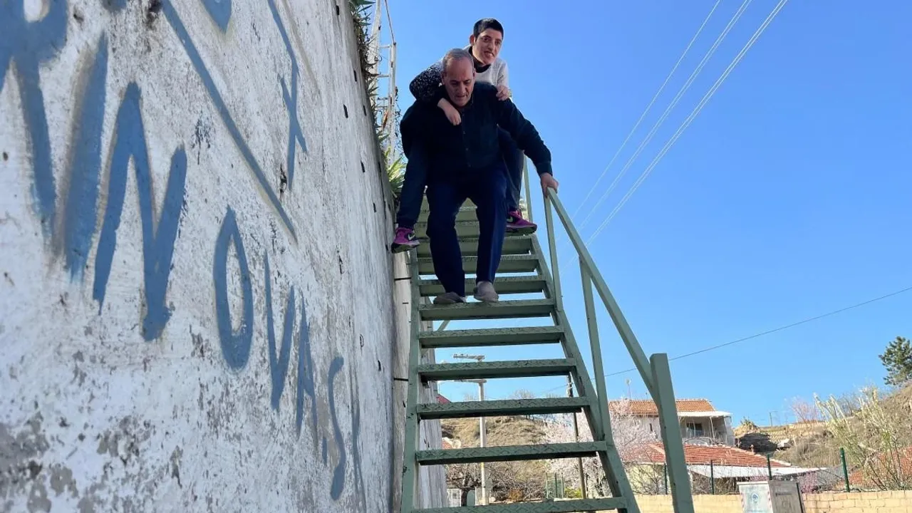 Ayağındaki platine rağmen kızını merdivenlerden sırtında indirip çıkardığını belirten 73 yaşındaki baba şöyle devam etti; “Sırtıma alıp indiriyorum. Biraz önce merdivenlerde de gördünüz. Kızım, aktif olarak okuluna gidiyor. Yoksa gündüz akşam bizi bırakmıyor. Okula götürüp getiriyoruz, araba da aşağı da duruyor, mecbur indiriyoruz. Arabası alıp getirip götürüyor. Böyle geçinip gidiyoruz. Benim ayağımda da platin var, ameliyat oldum. Hanımın da her iki dizinde platin var. Eskişehir Şehir Hastanesi’nde 2 sene ameliyat oldu o da. Benim yaşım 73, hanım 75 yaşında. Gidip geliyoruz, başka çaremiz yok. Artık belediyenin bize yapacağı bir babalık yani başka bir şey değil.”