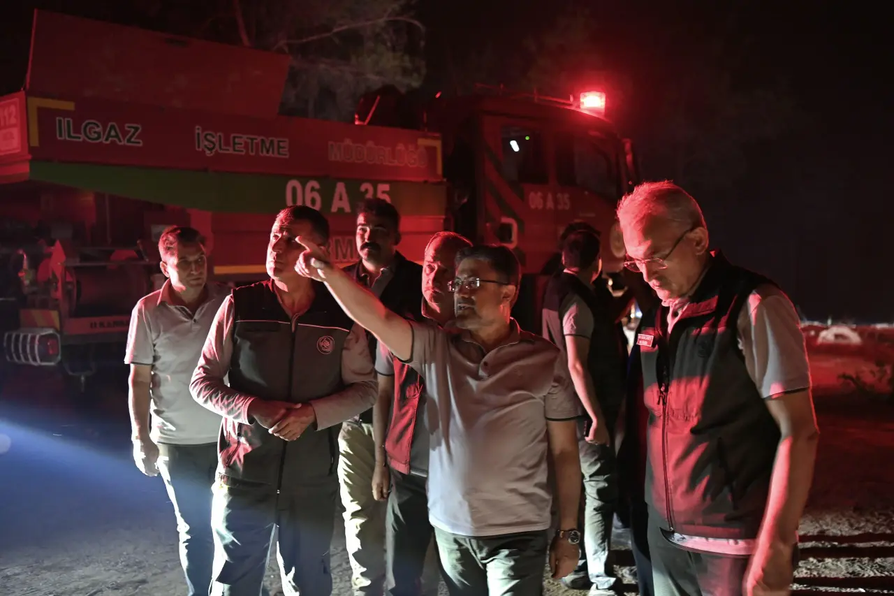 Koordinasyon merkezindeki incelemelerinin ardından gece yangınla mücadele eden ekiplerle bir araya gelen Yumaklı, telsizden personele seslenerek, “Bu memleketin bir tek dalına zarar gelmesin diye canınızı ortaya koyuyorsunuz. Hepinizin gözlerinden öpüyorum, Allah’a emanet olun,” dedi.