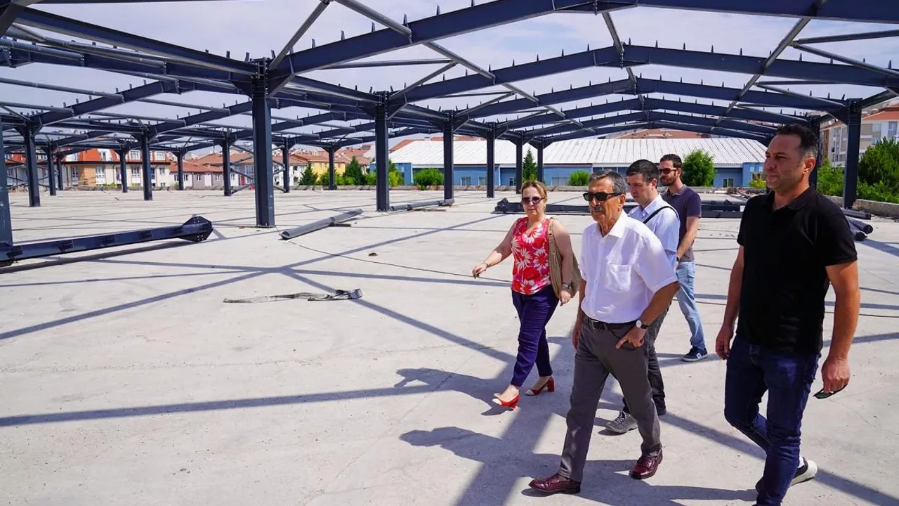 Tepebaşı Belediyesi yapımına devam ettiği Çamlıca Kapalı Pazaryeri’nin üst katındaki çalışmalar hız kesmeden sürüyor. Vatandaşların pazar alışverişlerini güvenle yaptığı Çamlıca Kapalı Pazaryeri, vatandaşa farklı hizmetler sunmaya hazırlanıyor. Geçen aylarda ihalesi yapılan ve çalışmalara başlanan Çamlıca Kapalı Pazaryeri’ne ikinci bir kat yapılarak vatandaşı sosyal tesisler ile buluşturacak. Çamlıca Mahallesi’nde hizmet veren pazaryerinin yapılacak ikinci katında 3 bin 800 metrekarelik alanda 2 adet düğün salonu, 2 bin 160 metrekarede hizmet verecek bir pazar market, 900 metrekare alanda hizmet verecek etüt merkezi ve 850 metrekarede de belediye hizmet alanı yer alacak. “Çamlıca ve Eskişehir’e hizmet verecek”