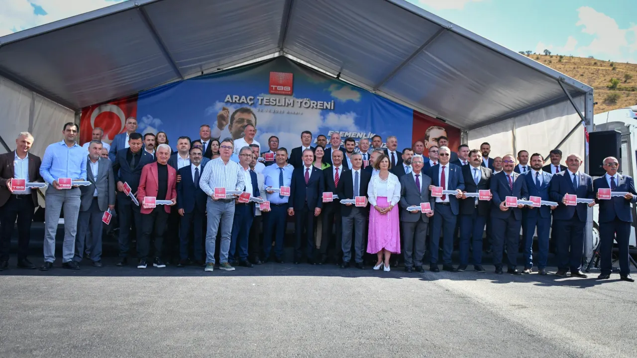 Çankaya Belediyesi Yerleşkesinde düzenlenen törende, farklı siyasi partilere mensup belediyelere toplam 53 adet hizmet aracı teslim edildi.