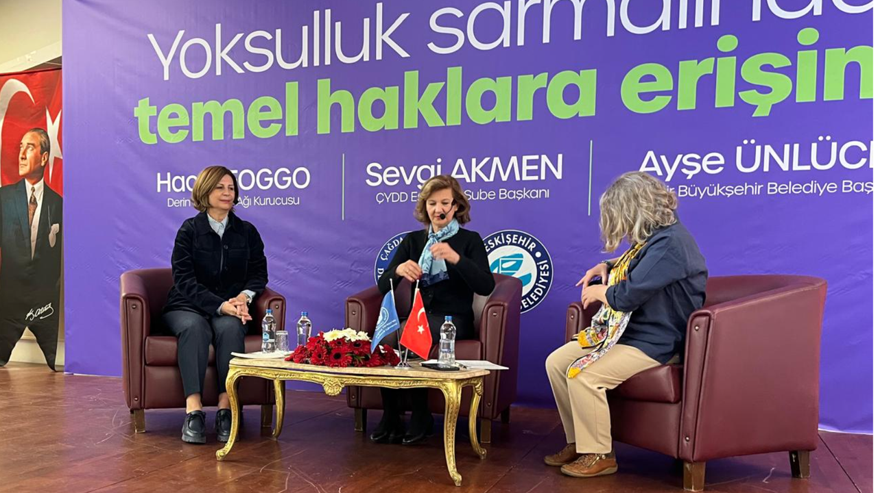 Eskişehir Büyükşehir Belediye Başkanı Ayşe Ünlüce, "Yoksulluk Sarmalında Temel Haklara Erişim" panelinde, şehrin yoksullukla mücadeleye yönelik yürüttüğü projeleri tanıttı. Başkan Ünlüce, yoksulluk haritası çalışmasının Eskişehir'deki en başarılı projelerinden biri olduğunu belirterek, mahalle mahalle, sokak sokak ve ev ev yapılan taramalarla, yoksul hanelerin tespit edildiğini vurguladı. Ünlüce, “Bize 'uykuda bile yoksulluk haritasını çıkarın' deseniz, bunu rahatlıkla yapabiliriz. Nerede ihtiyaç olduğunu biliyoruz” diyerek, bu haritanın sunduğu avantajları anlattı.