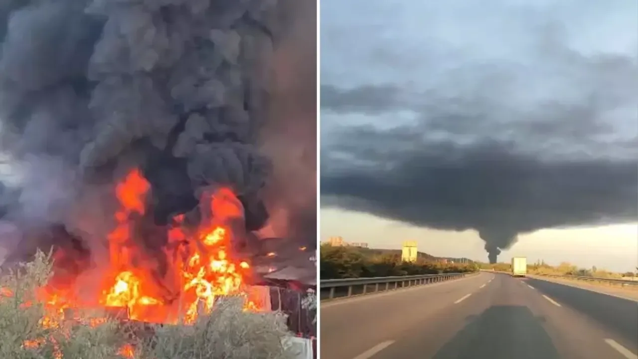 Gece boyu süren yangın nedeniyle duman kentin üzerine çöktü. Sabah saatlerinde havadan görüntülenen bölge, sis bulutuna bürünmüş gibi görünürken, gökyüzünün dumanla kaplandığı anlar dronla kayıt altına alındı.