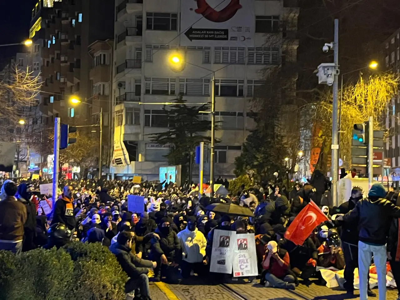 Doktorlar ve Cengiz Topel Caddesi'nde polisle karşı karşı gelen grup polise barikatı açması için direniyor. Polis 3. ikazı yapmasına rağmen henüz bir mühahale yaşanmadı. Öğrenciler polisin kurduğu barikatın karşısında oturma eylemine başladı.