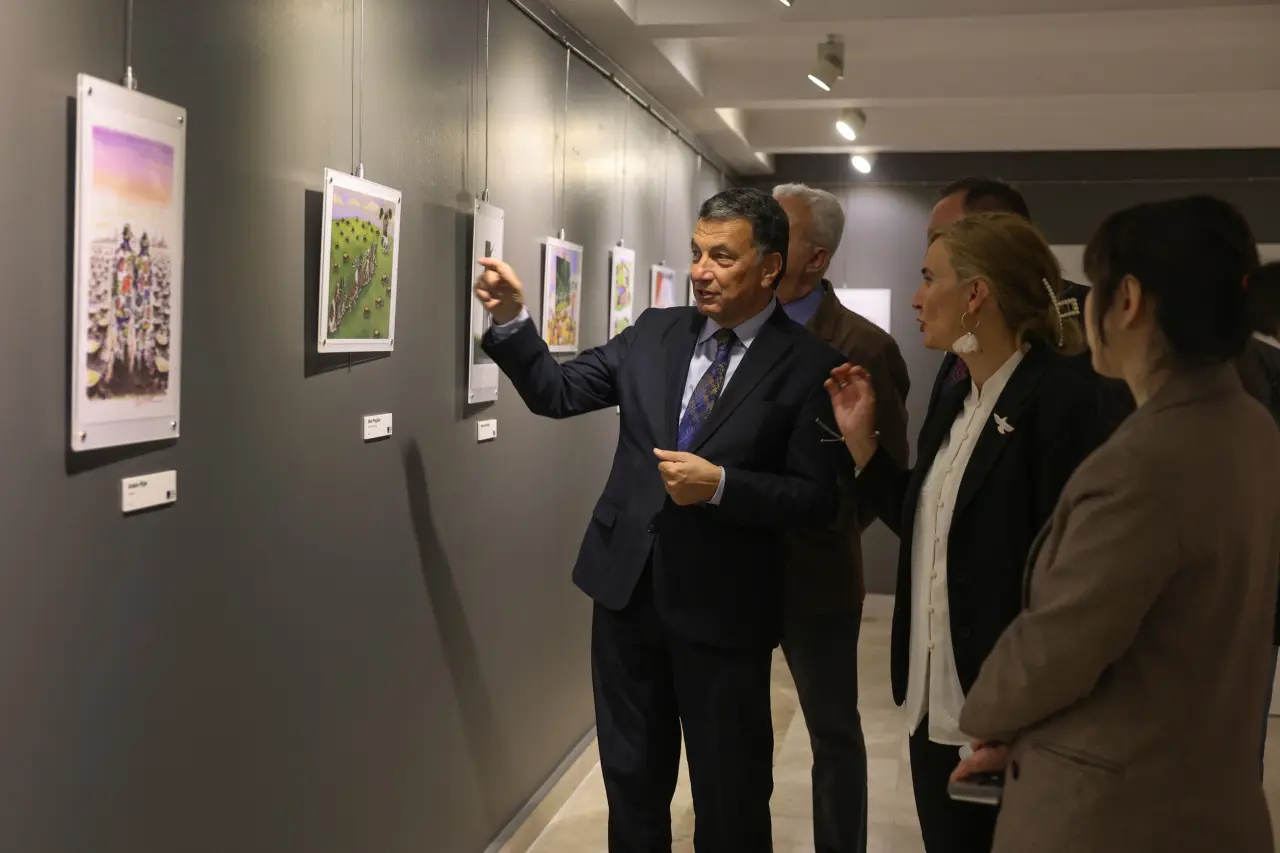 Açılışta konuşan Hasan Ünal, “Sanatın birleştirici, düşündürücü ve iyileştirici gücüne her zaman inandık. Bu sergi, tam da bu gücü en güzel şekilde yansıtıyor. Dünyanın dört bir yanından sanatçıların 40 yıl boyunca Aydın Doğan Uluslararası Karikatür Yarışması’na kazandırdığı eserlerden oluşan bu seçki, hem sanatın evrensel dilini hem de umudun yeniden doğuşunu bizlere hatırlatıyor. Karikatür, bir çizginin içine dünyaları sığdırabilen, güldürürken düşündüren, eleştirirken umut aşılayan bir sanattır. Burada sergilenen her bir eser, geçmişten bugüne yaşadığımız zorluklara, savaşlara, çevre sorunlarına ve toplumsal meselelere karşı insanlığın ortak vicdanının bir ifadesidir. Bu anlamlı sergiyi Eskişehirli sanatseverlerle buluşturdukları için başta Aydın Doğan Vakfı’na, değerli yöneticilerine ve tüm emeği geçenlere içtenlikle teşekkür ediyorum. Eskişehir, kültürün, sanatın ve özgür düşüncenin kenti. Biz, her zaman sanatın ışığında yol yürümeye, her yeni etkinlikle bu şehri daha da güzelleştirmeye devam edeceğiz. Çünkü inanıyoruz ki; sanat, karanlığın içinden doğan en güçlü umuttur. Bu duygularla, Küllerinden Doğan Umut sergisinin tüm ziyaretçilere ilham vermesini diliyor, bir kez daha emeği geçen herkese teşekkür ediyorum.” dedi.