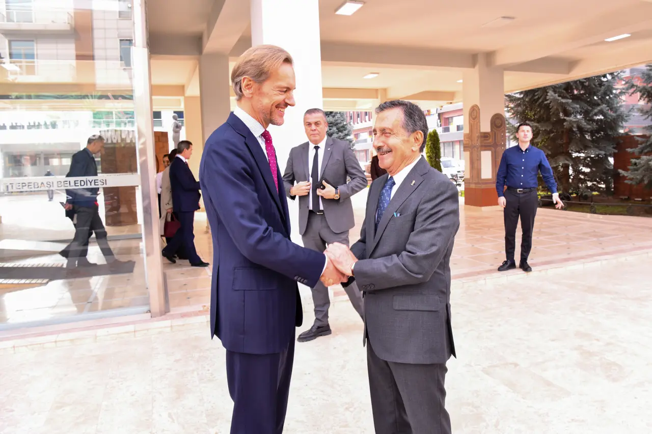 Çeşitli temaslarda bulunmak üzere Eskişehir’e gelen Belçika Büyükelçisi Hendrik Van Vende beraberindeki heyet Tepebaşı Belediye Başkanı Dt. Ahmet Ataç’ı makamında ziyaret etti. Eskişehir’i ve Tepebaşı’nı sanatsal ve güvenilir bir kent olarak yorumlayan Büyükelçi Vende, Tepebaşı Belediye Başkanı Ahmet Ataç’a çalışmalarında başarılar diledi.
