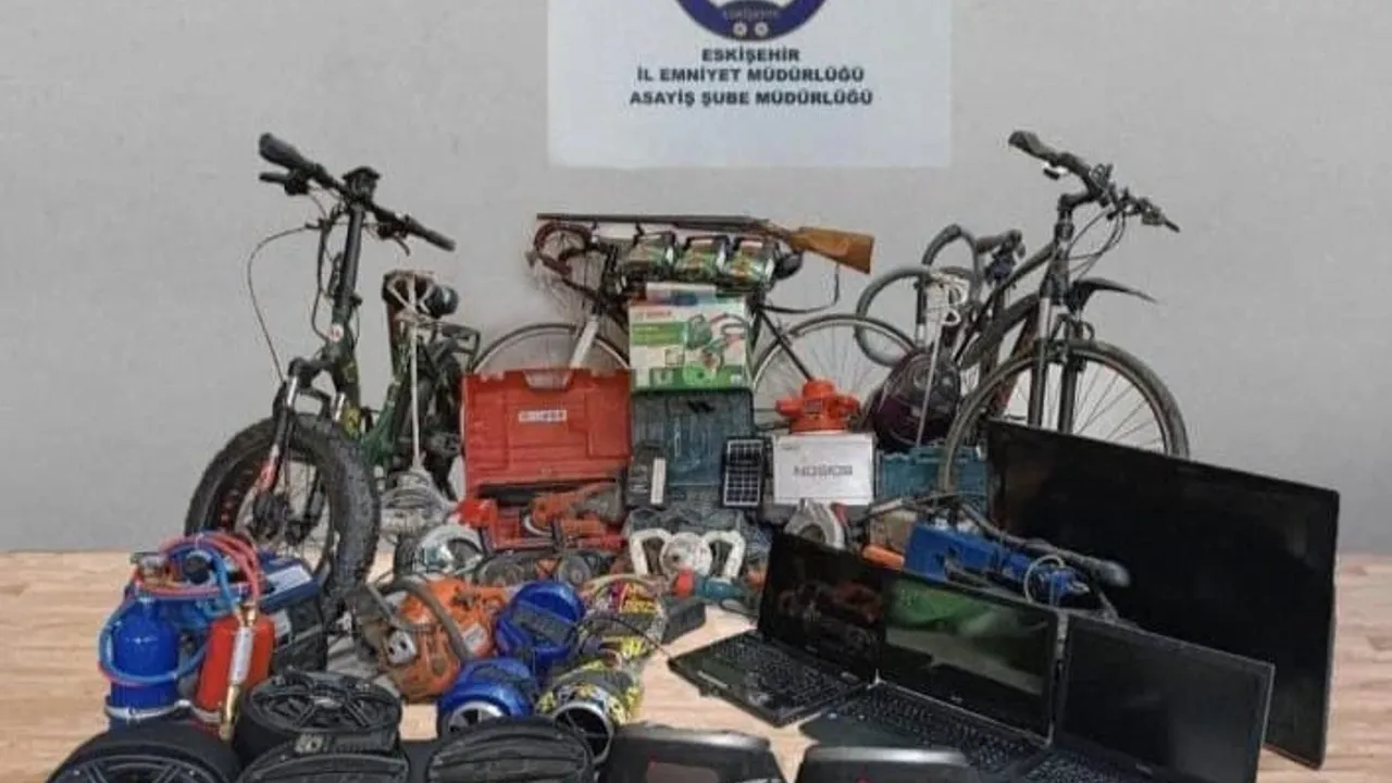 Eskişehir’de gerçekleşen hırsızlık olayı ile ilgili İl Emniyet Müdürlüğü’ne bağlı Asayiş Şube Müdürlüğünce çalışma başlatıldı. Çalışmalar neticesinde hırsızlık yoluyla elde edilen eşyaları satın aldığı tespit edilen C.A. isimli şahsın ikametinde ve müştemilatlarında yapılan aramalar sonucunda; 1 yivli av tüfeği,1 motosiklet, 1 elektrikli bisiklet, 2 bisiklet, 3 laptop bilgisayar, 1 televizyon, 1 jeneratör, 2 hoverboard, 6 araç ses sistemi ve çok sayıda inşaat malzemesi ekiplerce ele geçirildi. Ele geçirilen yivli av tüfeği, elektrikli bisiklet, bisiklet ve çeşitli inşaat malzemelerinin sahipleri polis ekiplerince tespit edildi. Gözaltına alınan şüpheli şahıs çıkarıldığı mahkemece tutuklandı.
