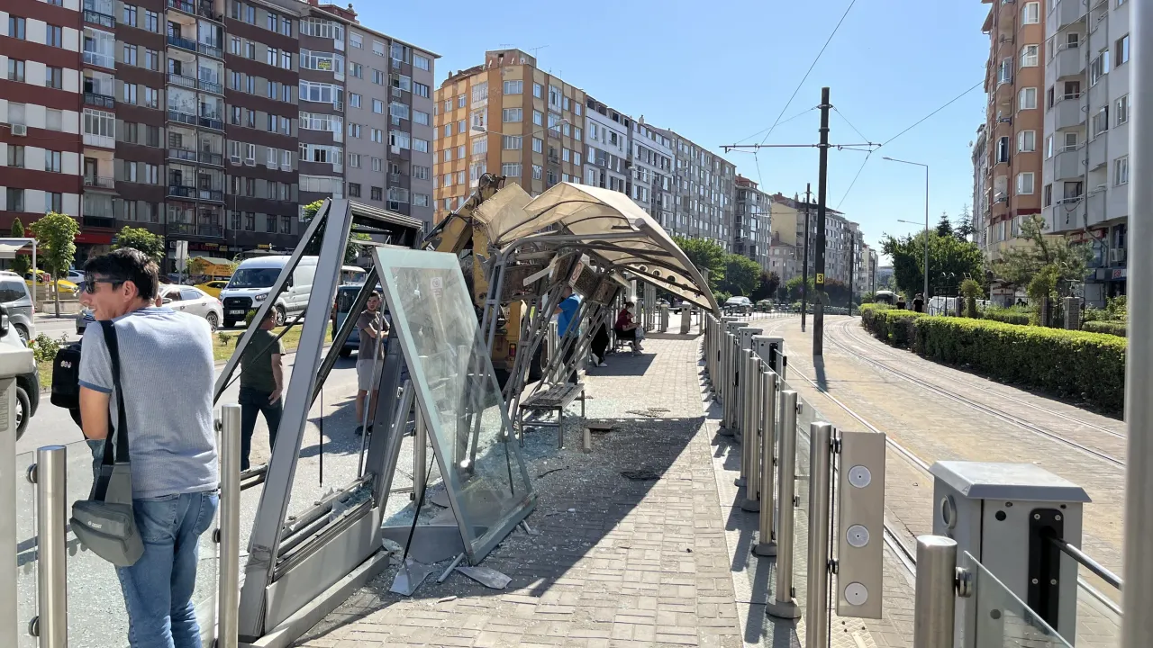 Kaza, saat 14.40 sıralarında Odunpazarı ilçesi Cumhuriyet Bulvarı üzerinde meydana geldi. Edinilen bilgilere göre, K.Ç. isimli sürücünün kullandığı plakası öğrenilemeyen iş makinasının kepçe kolu, Alanönü Tramvay Durağı’na çarptı. Çarpmanın etkisiyle durağın camları kırılırken, çevreye cam parçaları saçıldı ve durakta büyük çapta hasar meydana geldi.
