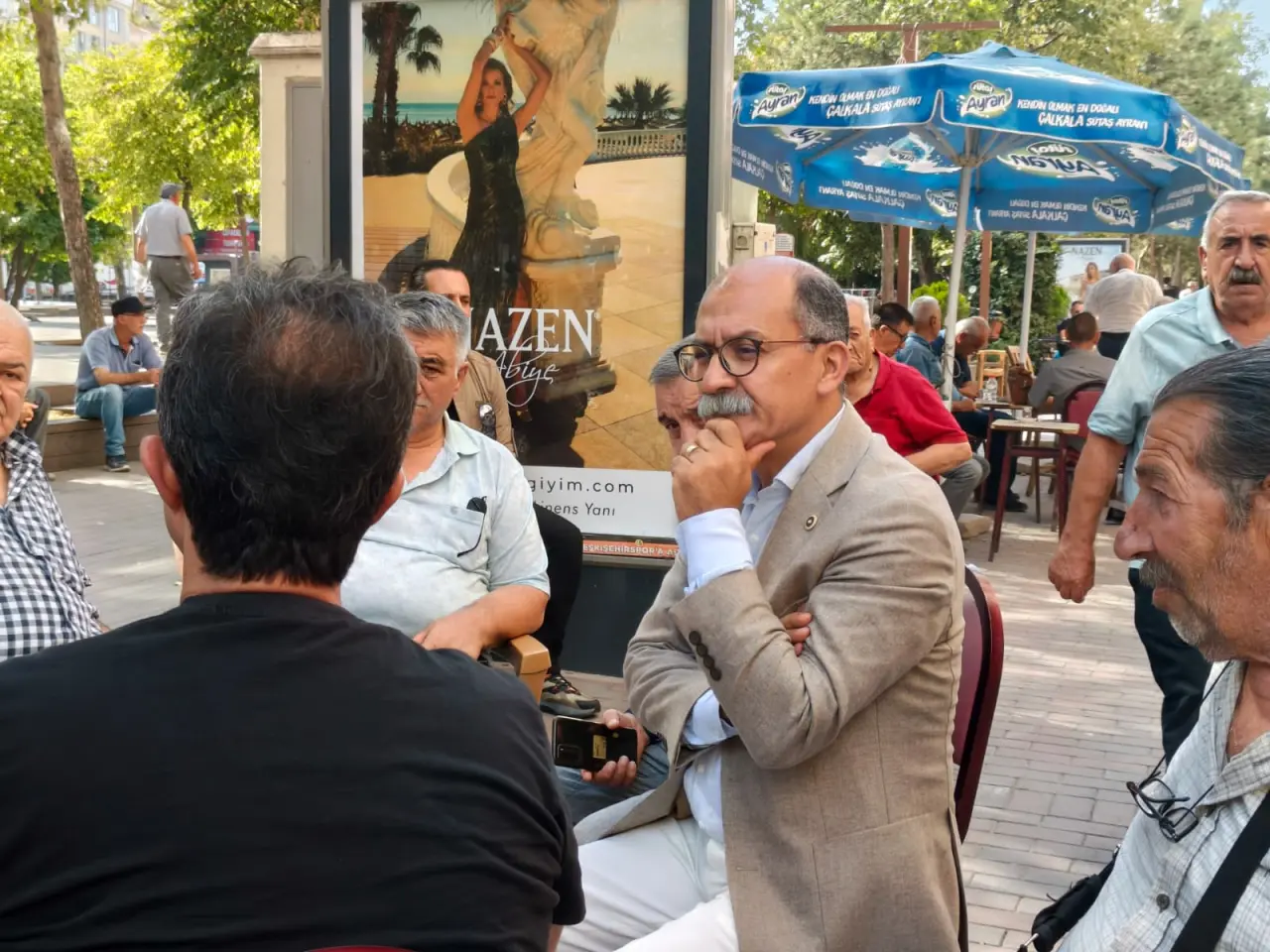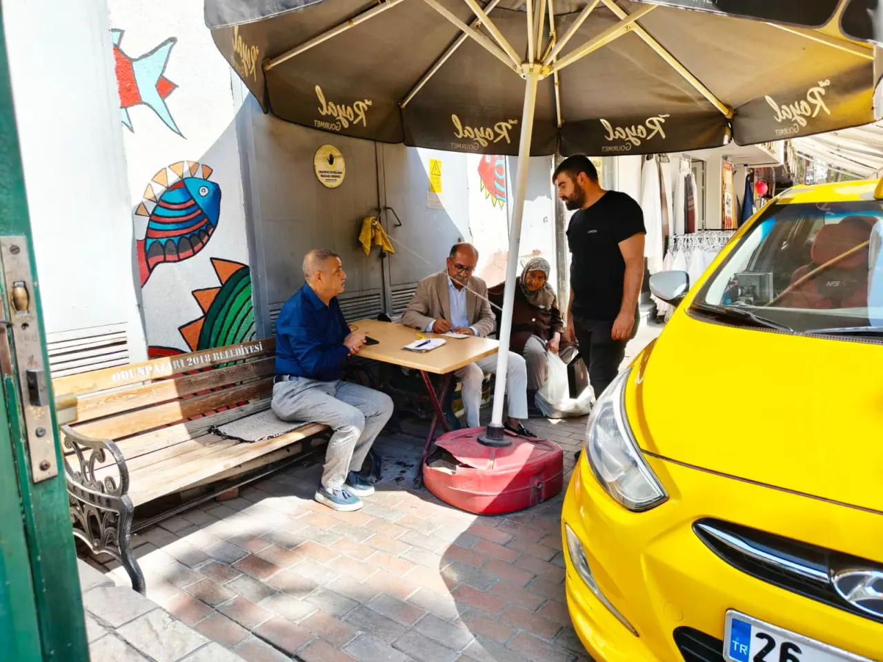 Ziyaret programı çerçevesinde, Eskişehir’in köklü taksi duraklarından biri olan Yılmaz Taksi Durağı da ziyaret edildi. Taksici esnafıyla görüşen Arslan, “Alın teriyle direksiyon başında emek veren tüm emekçilerimizin yanındayız” dedi.
