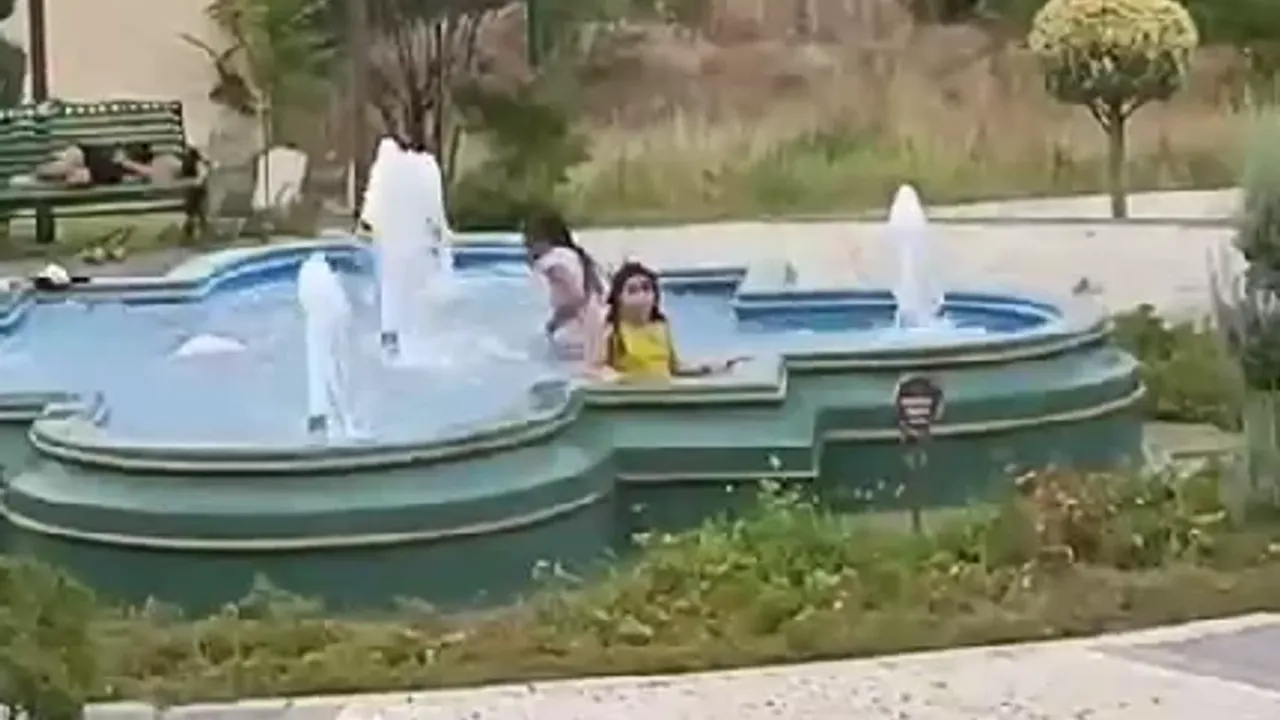 Eskişehir'de yüksek hava sıcaklığı nedeniyle bunalarak süs havuzunda serinlemeye çalışan çocukların tehlikeli serinleme yöntemi görenleri endişelendirirken, o anlar cep telefonu kamerasına yansıdı.