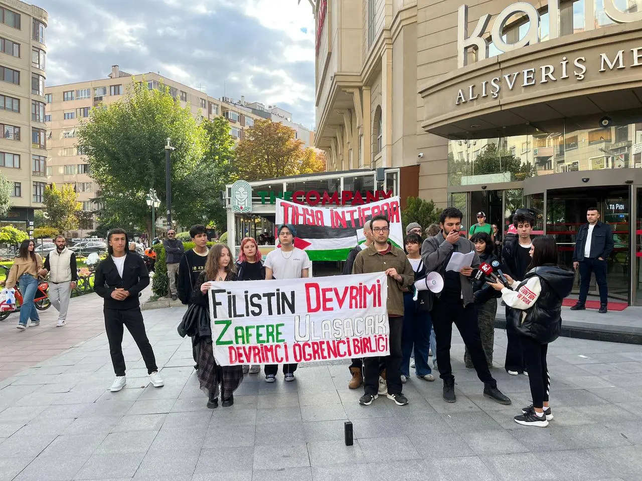 Devrimci Öğrenci Birliği, Filistin davasının insanlığın davası olduğunu belirterek, “Filistin özgürlük mücadelesi insalığın özgürlük mücadelesidir. Bu mücadele, Denizler ve Mahirler’den kalan enternasyonal dayanışma mirasını büyütüyor. Filistin halkı yalnız değildir” dedi.