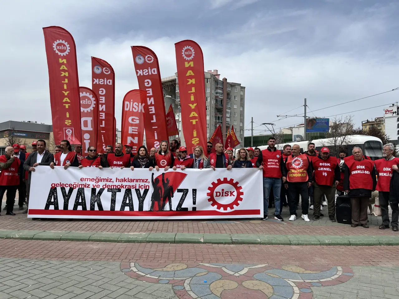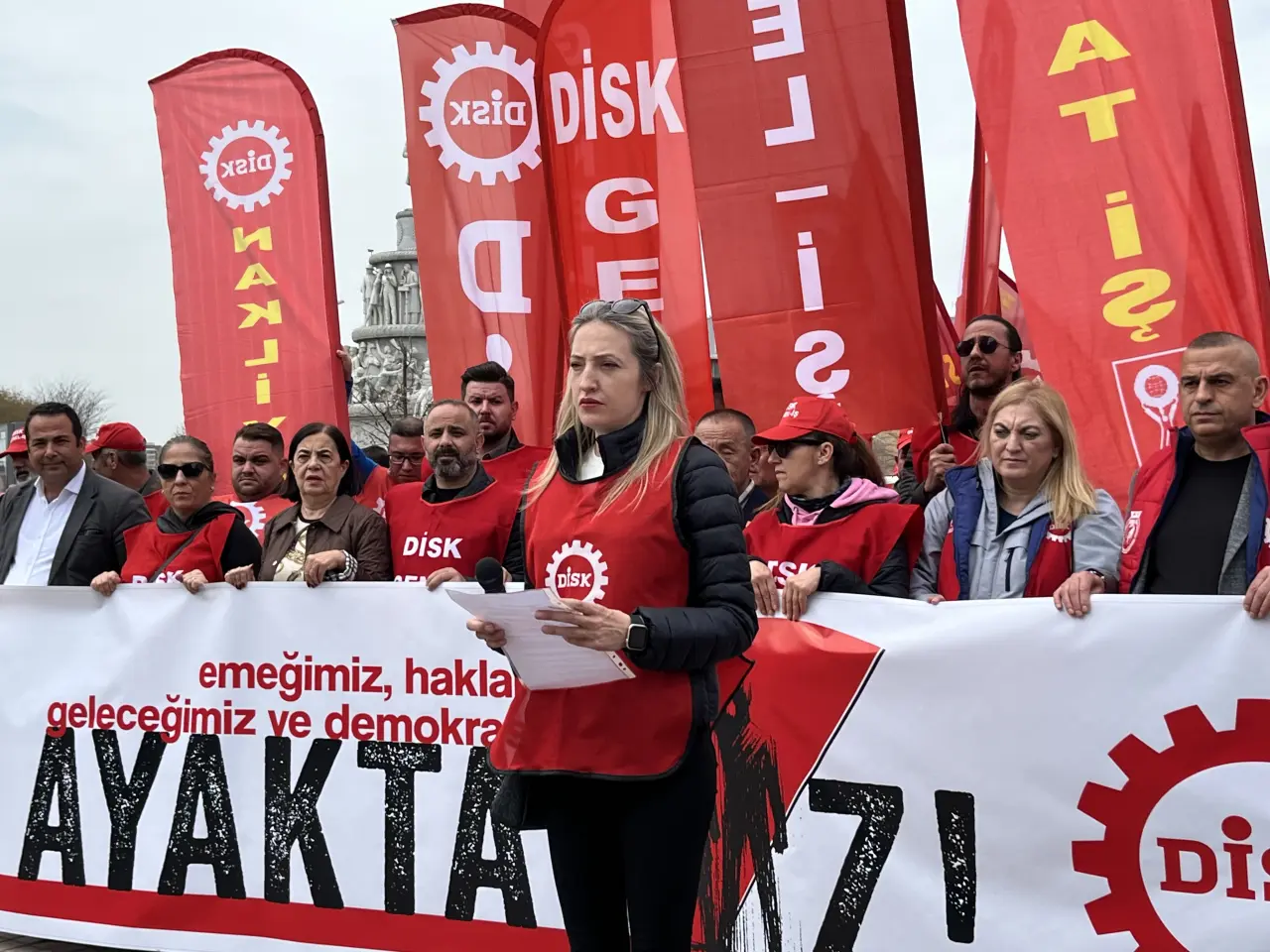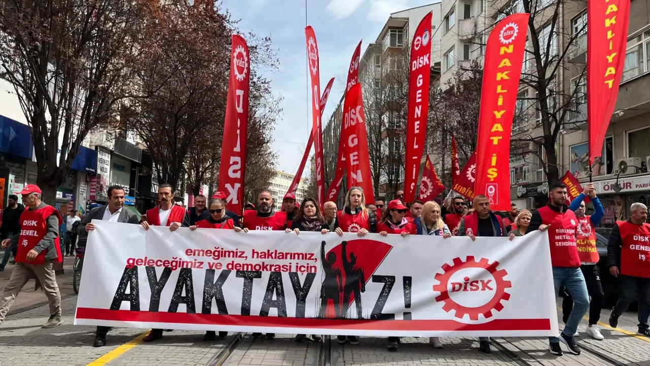 DİSK Eskişehir Şubesi, işçi hakları, demokrasi ve toplumsal adaletsizlik konularında yaşanan olumsuzluklara dikkat çekmek amacıyla Köprübaşı’nda bir araya gelerek Ulus Anıtı’na yürüdü. “Hükümet istifa”, “Kurtuluş yok tek başına ya hep beraber ya hiç birimiz”sloganlarının atıldığı yürüyüşün ardından, DİSK Eskişehir Bölge Temsilcisi Zeynep Kaya tarafından basın açıklaması yapıldı.