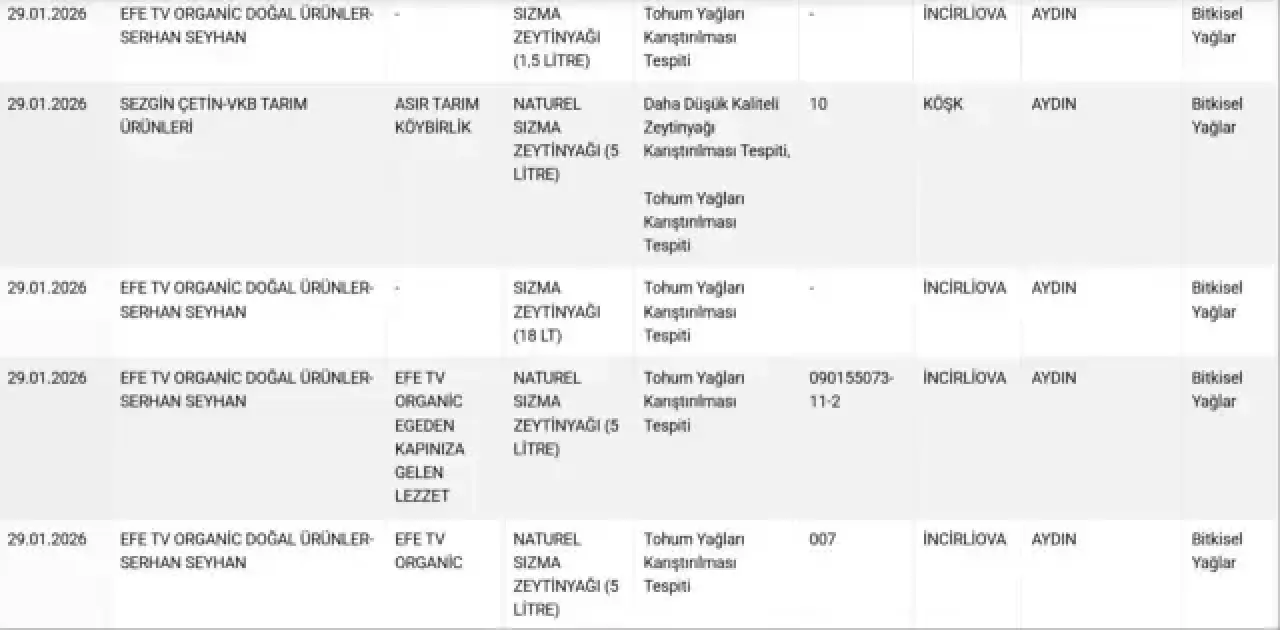 Bakanlığın “güvenilirgida.tarimorman.gov.tr” sitesinde yayımlanan güncel listede şu ürünler de yer alıyor: