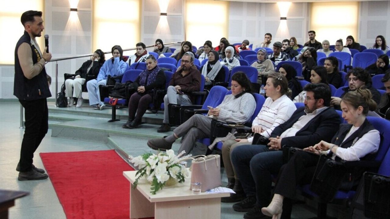 Mehmet Akif Ersoy Konferans Salonu’nda gerçekleştirilen etkinliğe akademik ve idari personel ile çok sayıda öğrenci katıldı. Saygı Duruşu ve İstiklal Marşı’nın okunmasıyla başlayan konferansta, dijital çağda gençlerin karşı karşıya kaldığı riskler ele alındı.