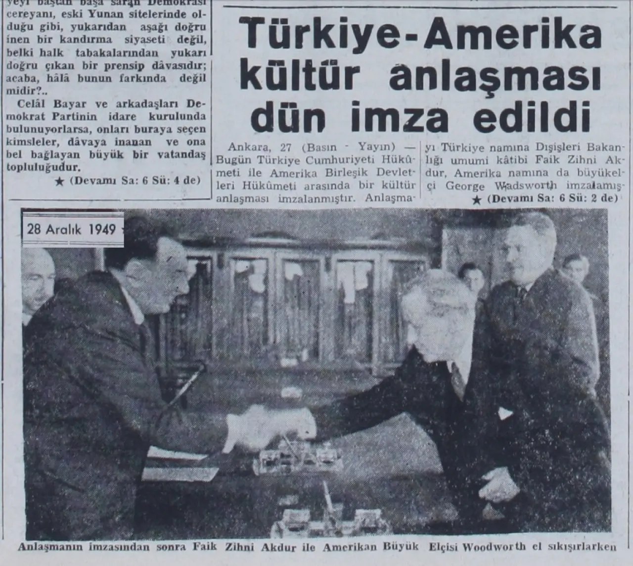 1949- Türkiye-ABD arasında Kültür Antlaşması imzalandı.