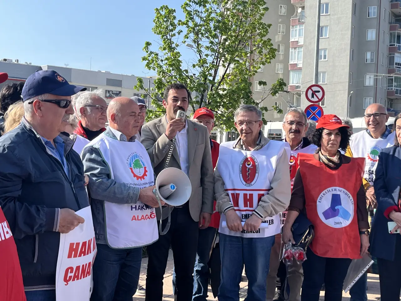 CHP İl Başkanı Talat Yalaz da konuşmasında, “Hayatlarının en verimli dönemlerini bu ülkeye adamış insanların emeklilikte yollara düşmesi düşündürücü. Bu mücadeleyi destekliyor, haklarını alacakları güne kadar yanlarında olacağımızı ilan ediyoruz” dedi.