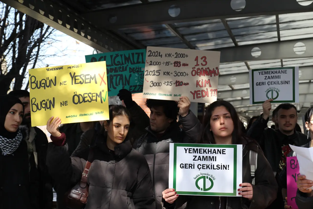 Anadolu Üniversitesi’nde yemekhane ücretlerine yapılan zam, öğrenciler arasında büyük tepki topladı. Anadolu Üniversitesi Öğrenci Birliği adına konuşan Berivan Özkara, rezervasyonlu yemek öğün ücretinin 25 TL’ye, günlük yemek ücretinin ise 100 TL’ye yükseldiğini belirterek, bu zammın öğrencilerin yaşam koşullarını daha da zorlaştırdığını ifade etti.