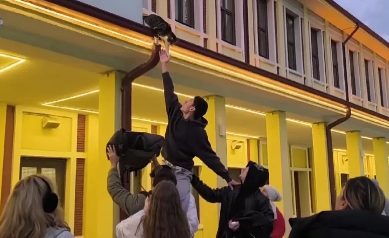 Olay, dün akşam saatlerinde Hoşnudiye Mahallesi İstasyon Caddesi üzerinde meydana geldi. Eskişehir Tren İstasyonu’nun çatısından gelen kedi seslerini fark eden vatandaşlar durumu merakla izlerken, bir grup genç sevimli hayvanı kurtarmak için harekete geçti. Aslında kendi başına inebileceği bir yükseklikte bulunan kediyi almak isteyen gençler, birbirlerinin omuzlarına çıkarak hayvana ulaşmaya çalıştı. Olası bir düşme ihtimaline karşı aşağıda çantalarını açarak önlem alan gençlerin çabaları dikkat çekti. Ancak kedi, bir ileri bir geri giderek kendisini kurtarmaya çalışan gençlerle adeta oyun oynadı. Tüm uğraşlara rağmen sonuçsuz kalan ve “başarısız” olarak nitelendirilen kedi kurtarma operasyonu, çevrede bulunan bir vatandaş tarafından cep telefonu kamerasıyla saniye saniye kaydedildi.