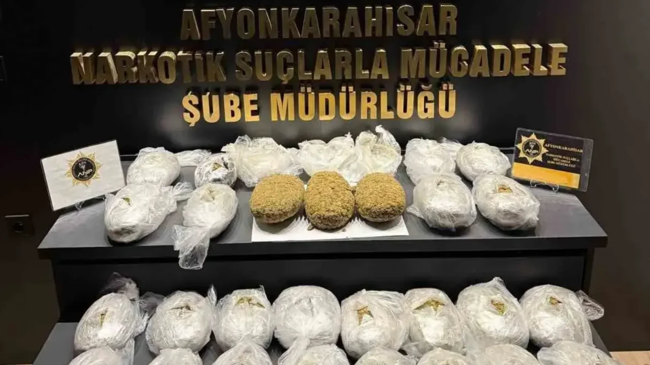 Operasyon Şuhut kavşağı mevkiinde gerçekleştirildi. Kent girişinde trafik ve asayiş uygulaması yapan ekipler, şüphe üzerine bir aracı durdurdu. Araçtaki kişilerin tedirgin davranışları üzerine Narkotik dedektör köpeği ile yapılan aramada, köpeğin tepki verdiği arka kapı döşemesi söküldü.