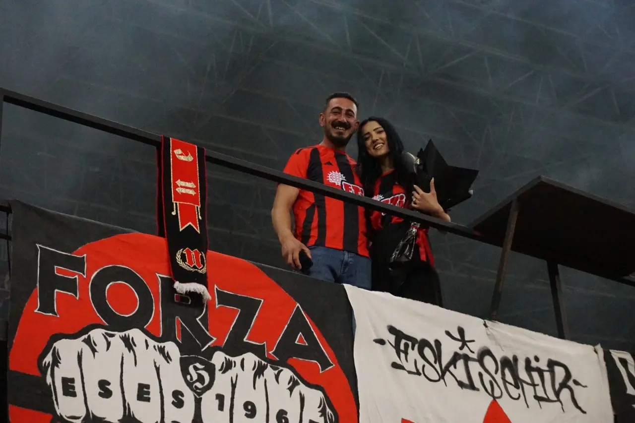 Kırmızı-siyahlı renklere gönül veren çiftin bu özel anı, taraftarların alkışlarıyla renklendi. Simge’nin “Evet” yanıtıyla stadyumda duygusal anlar yaşanırken, maçı izleyen taraftarlar bu sahneye büyük ilgi gösterdi. Eskişehirspor’un sahadan 1-1’lik beraberlikle ayrıldığı karşılaşmanın ardından taraftarlar, “Bu maçın tek mutlu anı buydu” yorumunda bulundu.