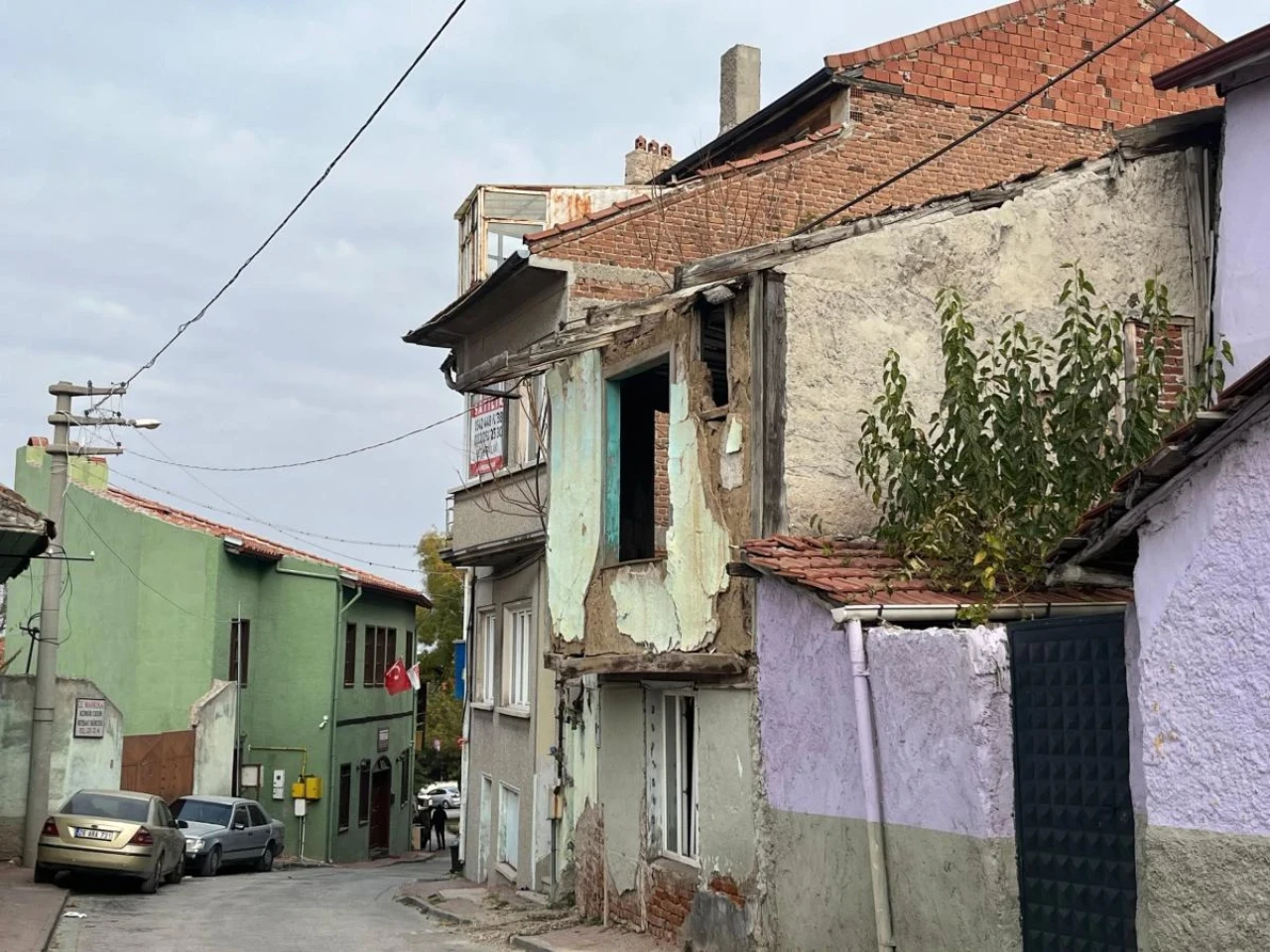 Eskişehir’in tarihi Odunpazarı bölgesindeki metruk binalar, uzun süredir bakım görmeyerek harabe hale gelmiş durumda. Yıkılma tehlikesiyle karşı karşıya kalan ve terk edilmiş durumda olan binalar, bölgedeki esnaf ve sakinlerde büyük bir endişe yaratıyor. Özellikle kerpiç yapıların, yağışlı havalarda daha da tehlikeli hale geldiği belirtiliyor. Bir binanın duvarına ise, “Lütfen duvar önüne park etme, tehlike arz ediyor” uyarısı yapıştırılmış olsa da, bina önüne park edilmiş araçlar dikkat çekiyor.
