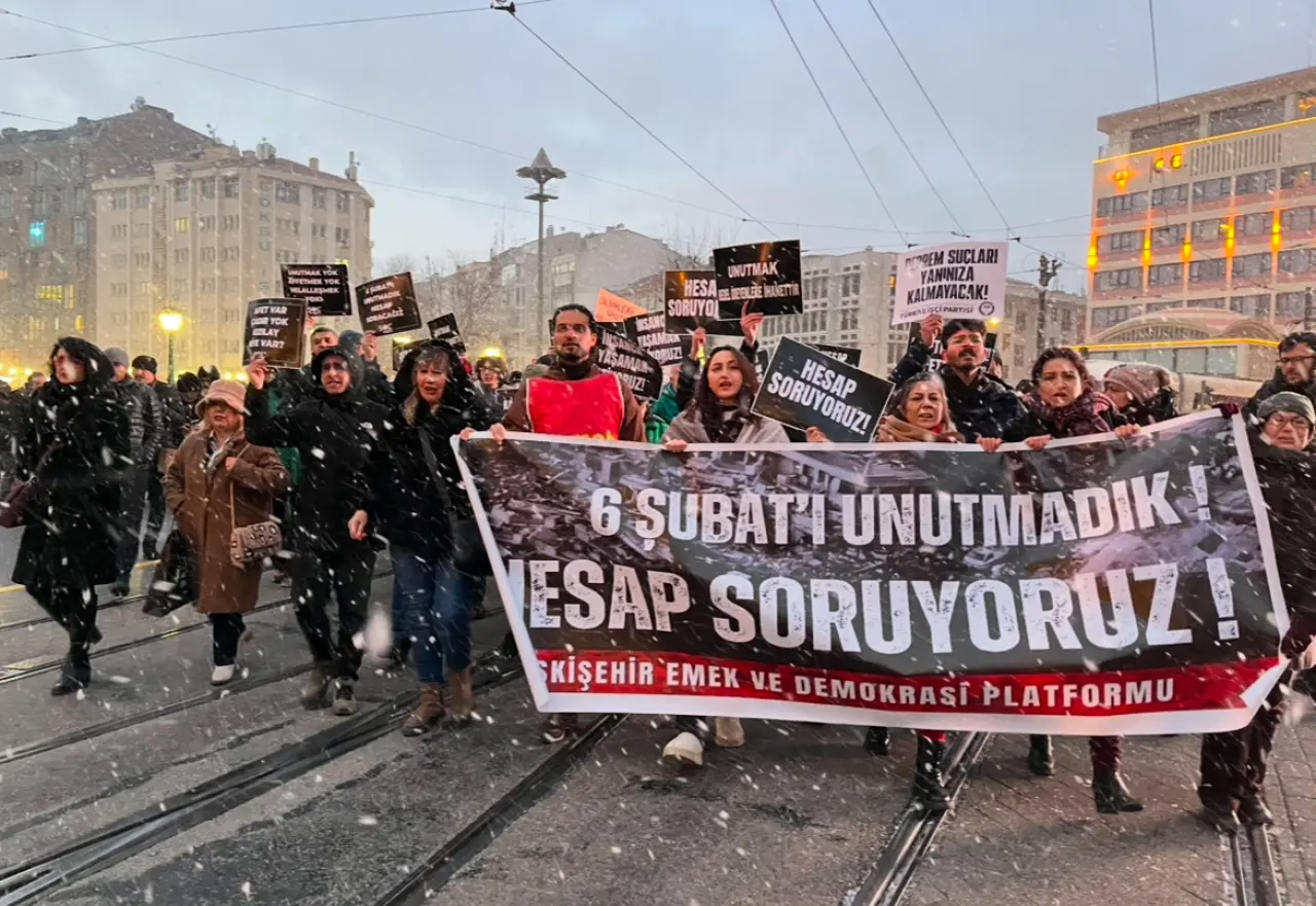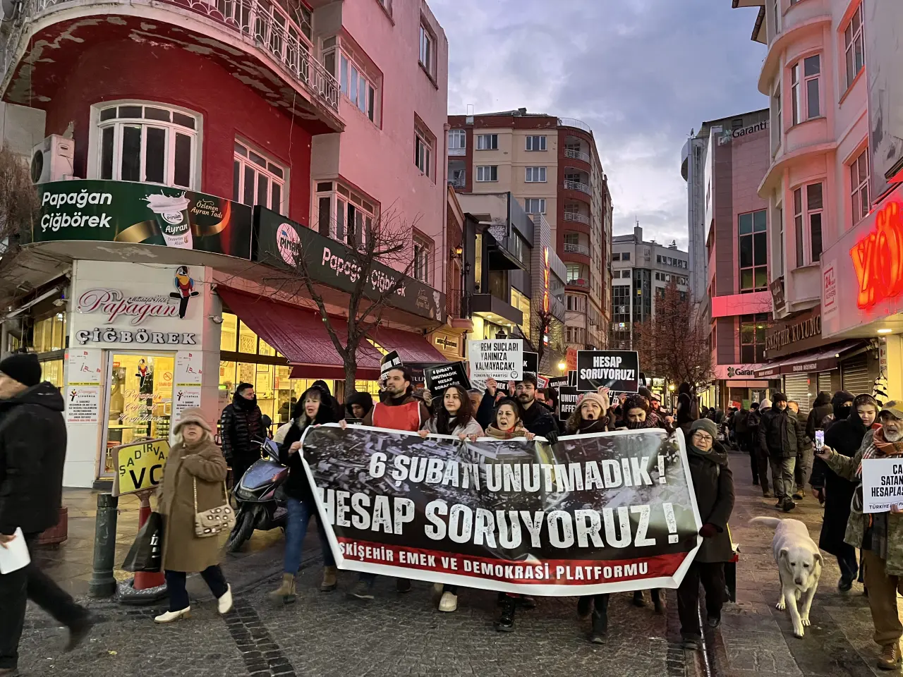 Eskişehir Emek ve Demokrasi Platformu, açıklamasında deprem sürecinde yaşanan ihmalleri tek tek sıralayarak, sorumluların hesap vermediğini vurguladı. “İnsan kaynağı ve teknik ekipmana sahip askeri ekiplerin bölgeye gönderilmemesi, arama kurtarma çalışmalarının geciktirilmesi, Kızılay’ın çadır satması, internet kısıtlaması gibi skandalların üstü örtülemez” ifadelerine yer verildi.