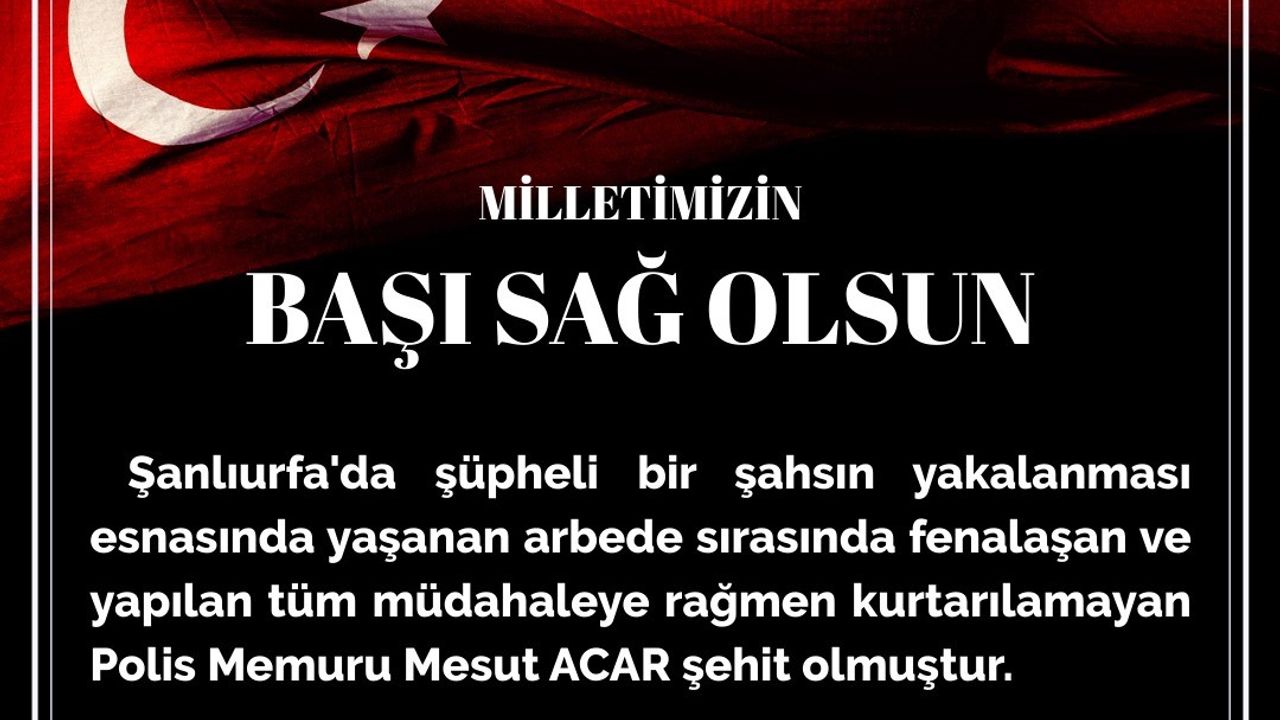 Şanlıurfa’da görev sırasında rahatsızlan polis memuru Mesut Acar şehit oldu. Şehit haberi yurt genelinde üzüntüye neden olurken, Eskişehir Emniyet Müdürlüğü taziye mesajı yayımladı. Sosyal medyadan yayımlanan mesajda, "Şanlıurfa’da şüpheli bir şahsın yakalanması esnasında yaşanan arbede sırasında rahatsızlanan ve yapılan tüm müdahaleye rağmen kurtarılamayan polis memuru Mesut Acar şehit olmuştur. Şehidimize Allah’tan rahmet, kederli ailesine ve milletimize baş sağlığı dileriz" ifadeleri yer aldı.