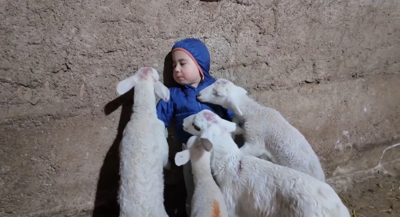 Eskişehir’in Seyitgazi ilçesine bağlı Çukurca Mahallesinde yaşayan Orhun Topkaya, çiftçilik ve hayvancılık yaparak hayatını sürdürüyor. Topkaya’nın minik Yusuf Alp isimli 3 yaşındaki oğlunun başına geçtiğimiz günlerde tebessüm ettiren bir olay geldi. Koyunlarını ağıla süren Orhun Topkaya’nın oğlunun etrafını çeviren kuzular, 24 Kasım’da 3 yaşına basan Yusuf Alp’in elindeki simitten parça koparıp, çocuğun yüzünü yaladı. O anları kaydeden babası Orhun Topkaya ise kahkahalar içinde kaldı. Oğluna, "Kuzular ne yapıyor sana?" sorusuna minik Alp, "Kuzular beni yiyorlar" cevabını vermesi yüzleri gülümsetti.