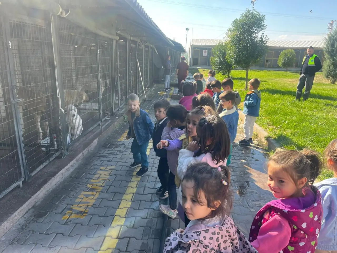 Barınaktaki sevimli köpekler ve kedilerle yakından ilgilenen çocuklar, onlara mama vererek hem eğlendi hem de sorumluluk duygusu kazandı. Ziyaret boyunca neşeleriyle dikkat çeken öğrenciler, hayvan sevgisini küçük yaşta öğrenmenin mutluluğunu yaşadı.