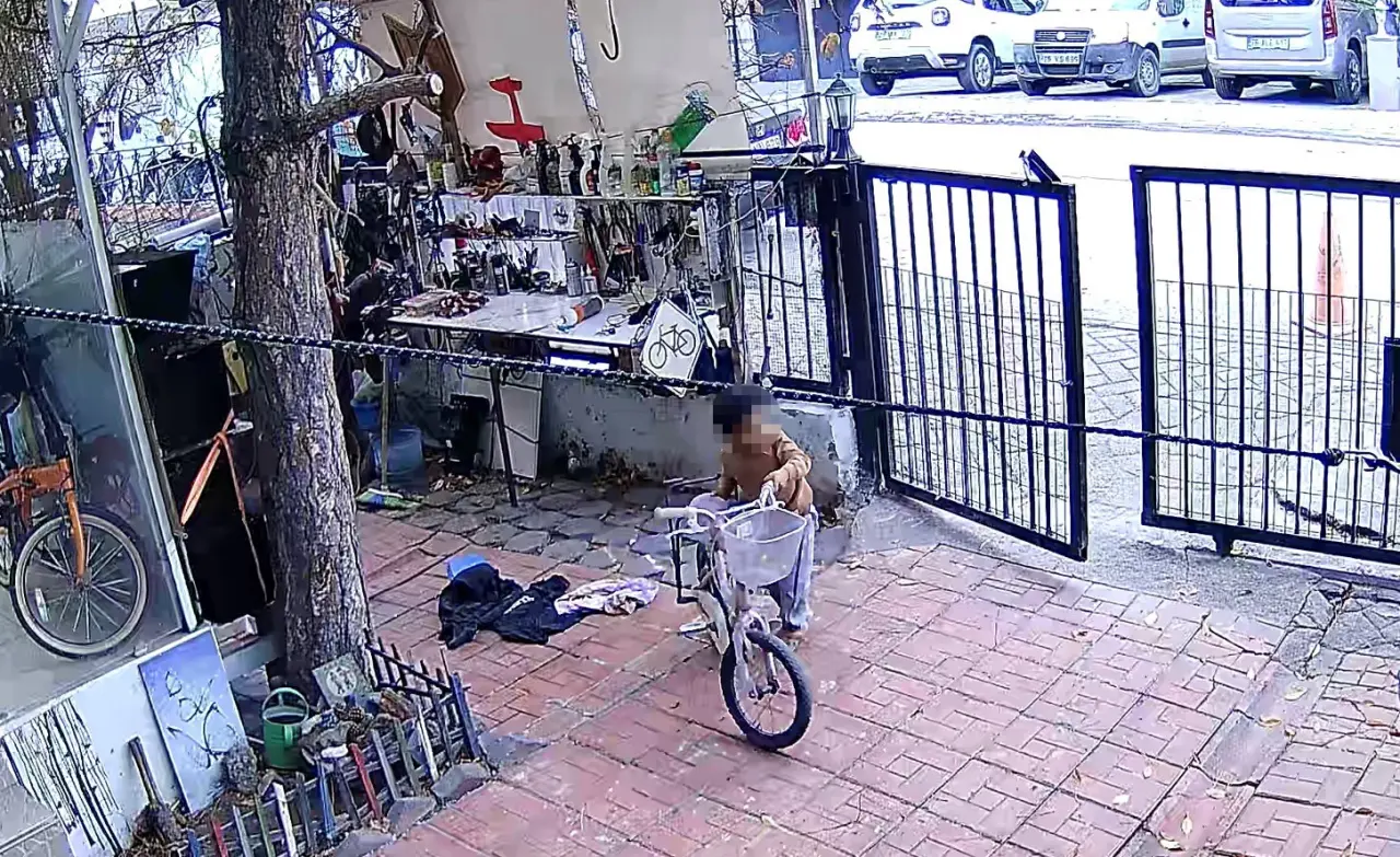 Görüntülerde ikametin bahçe kapısına gelen iki yaşı küçük çocukta uzun boylu olanı kapıyı açıyor. İçeri giren kısa boylu çocuk, direkt rafların altında bulunan küçük bisiklete yöneliyor. Bisikleti alan çocuk bahçeden hızla uzaklaşıyor. Bisikletini çalan çocuklardan rahatsız olan ikamet sahibi ise, "İsteselerdi bisikleti verirdim. Küçük yaşta böyle bir şey yapmalarına üzüldüm" dedi.