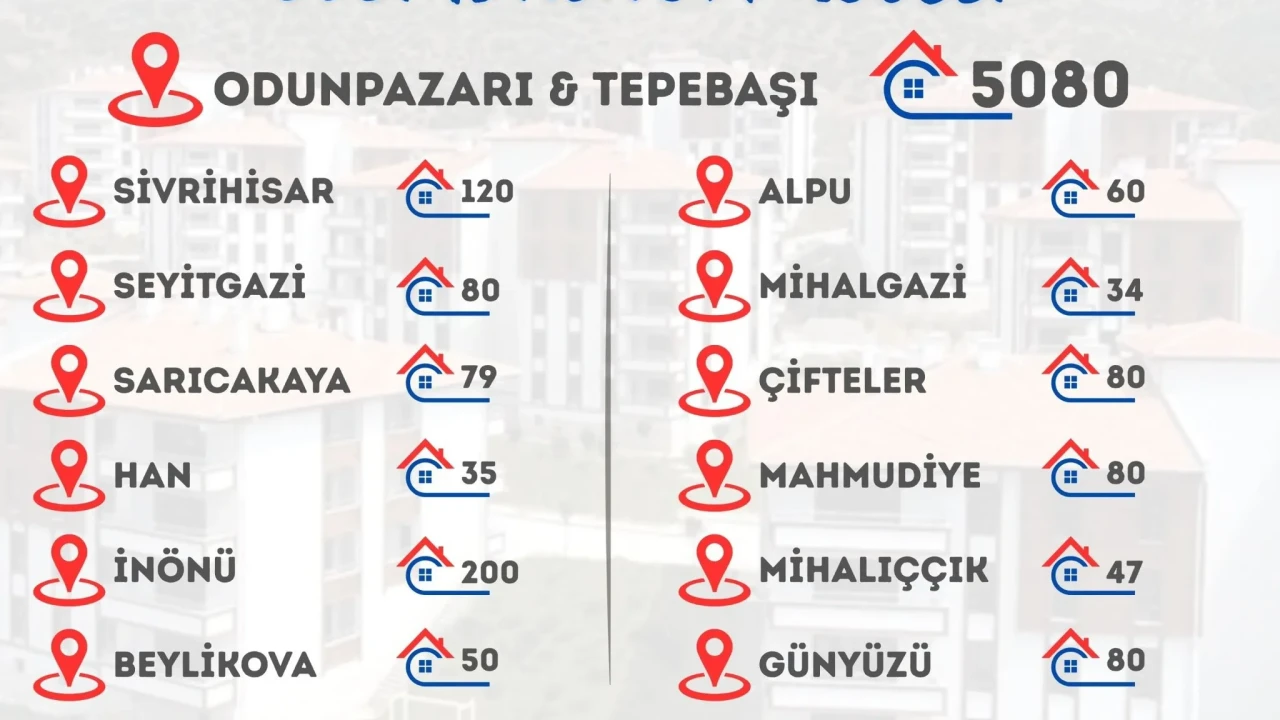 Odunpazarı ve Tepebaşı: 5.080 konut