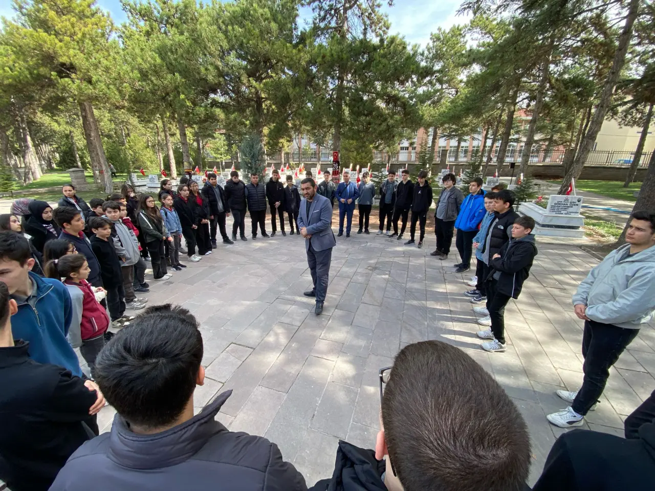 18 Mart Şehitleri Anma Günü ve Çanakkale Deniz Zaferi'nin 110. yıl dönümü dolayısıyla, ÇEDES projesi kapsamında öğretmenler ve öğrenciler Eskişehir’deki Hava Şehitliği'ni ziyaret etti. Ziyaret, Kuran-ı Kerim tilavetiyle başladı ve vatan uğruna canlarını feda eden şehitler için dualar okundu.