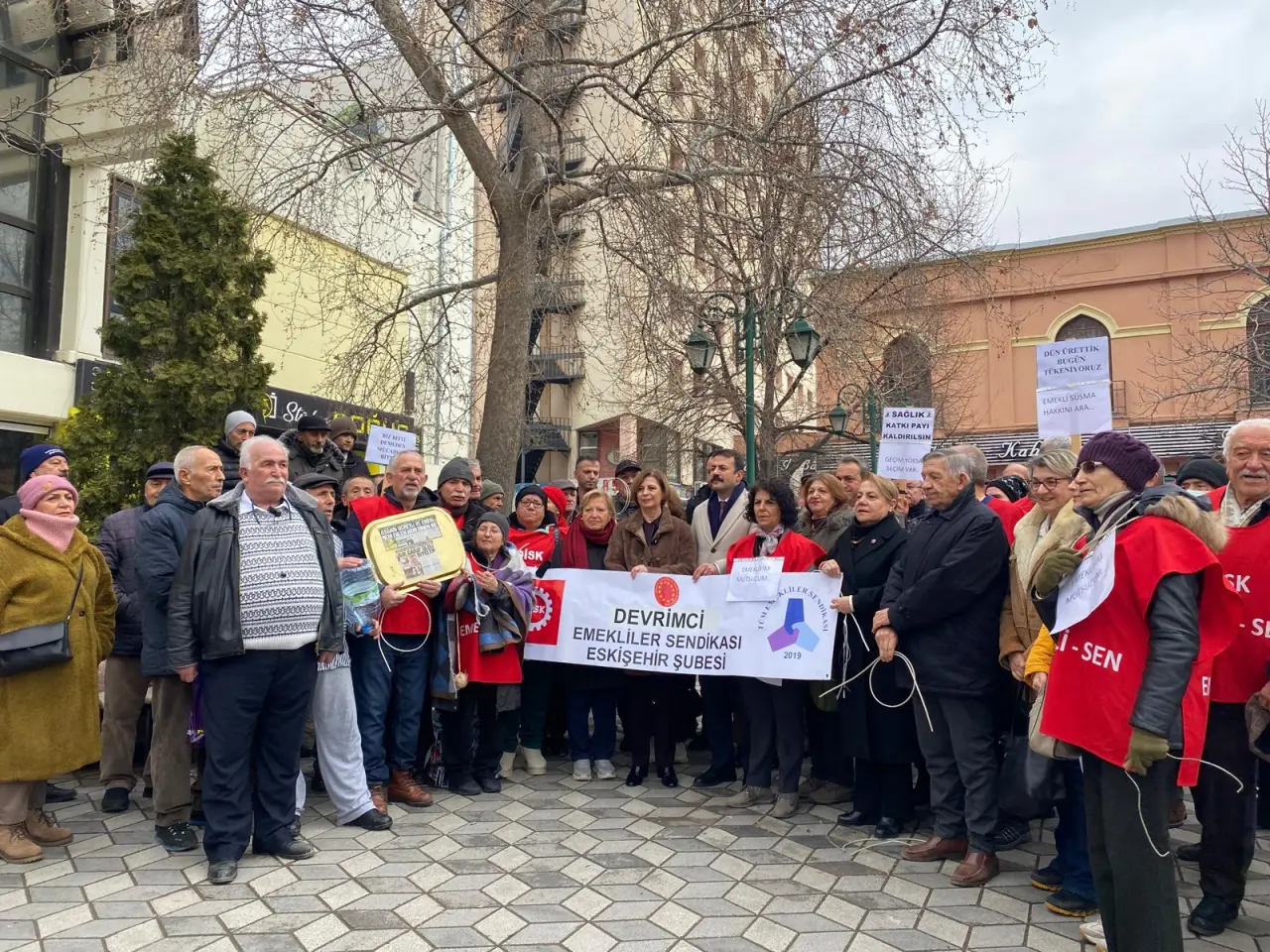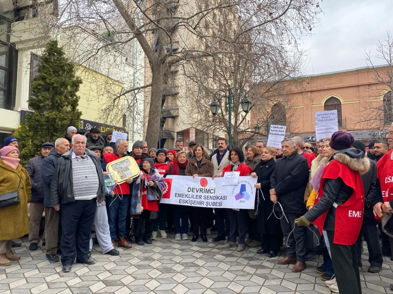 Eskişehir Büyükşehir Belediye Başkanı Ayşe Ünlüce ile CHP Eskişehir İl Başkanı Talat Yalaz’ın da alanda emeklilerle dayanışma gösterdiği açıklamada, emeklilerin talepleri net şekilde sıralandı. En düşük emekli maaşının asgari ücret seviyesine yükseltilmesi, seyyanen zam yapılması, sağlıkta katkı paylarının kaldırılması ve kiracı emeklilere destek sağlanması istendi.