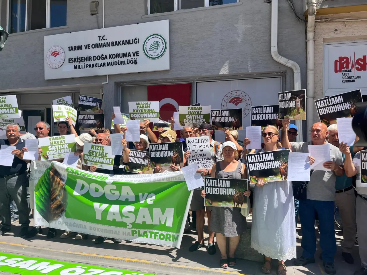 Eskişehir Doğa ve Yaşam Platformu, Doğa Koruma ve Milli Parklar Müdürlüğü önünde bir araya gelerek, Tarım ve Orman Bakanlığı’na bağlı bölge müdürlükleri tarafından düzenlenecek av ihalelerini protesto etti. Platform adına konuşan Ebru Oktay, hayvanların öldürülmek üzere satışa çıkarıldığını belirterek, bunun hem Bern Sözleşmesi’ne hem de yaşam hakkına aykırı olduğunu vurguladı.