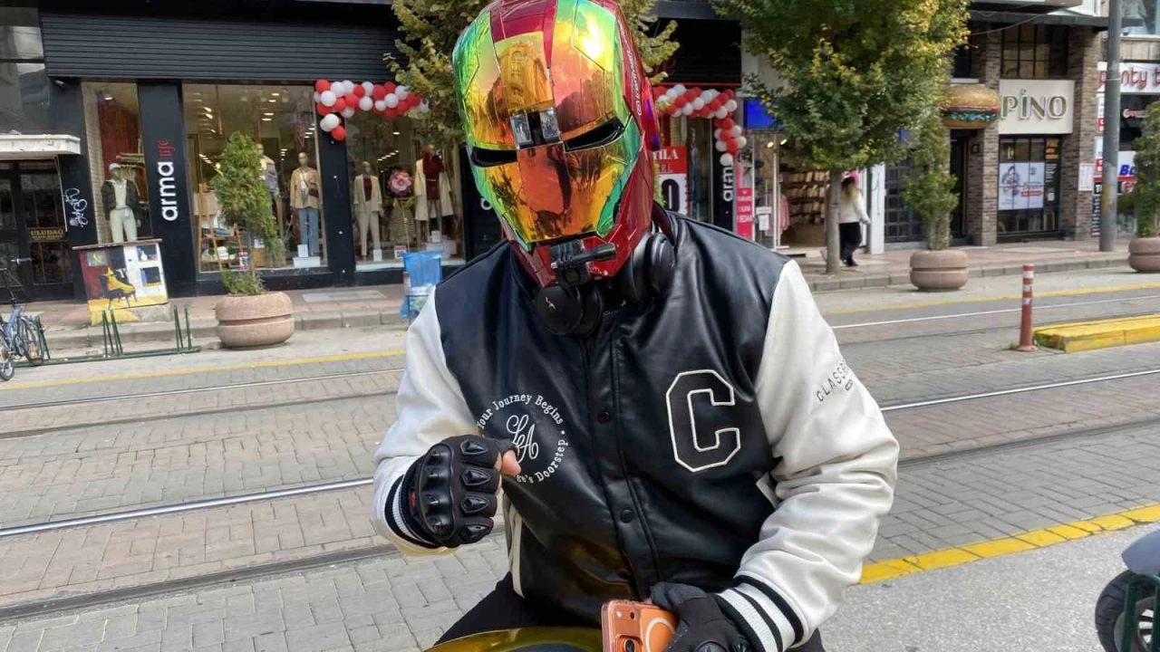 Eskişehir’de motosikletiyle gezen Bahadır Dülger, taktığı İron-Man (Demir Adam) kaskı sayesinde kentte ilginç görüntülere sahne oluyor. Dünyaca ünlü çizgi roman karakterinden esinlenen Dülger, internetten gördüğü kaskı kısa süre önce satın aldı. Ürünün ulaşmasının ardından iç kısmını normal bir motosiklet kaskı gibi kaplayarak güvenli hale getiren Dülger, kaskı günlük sürüşlerinde kullanmaya başladı.