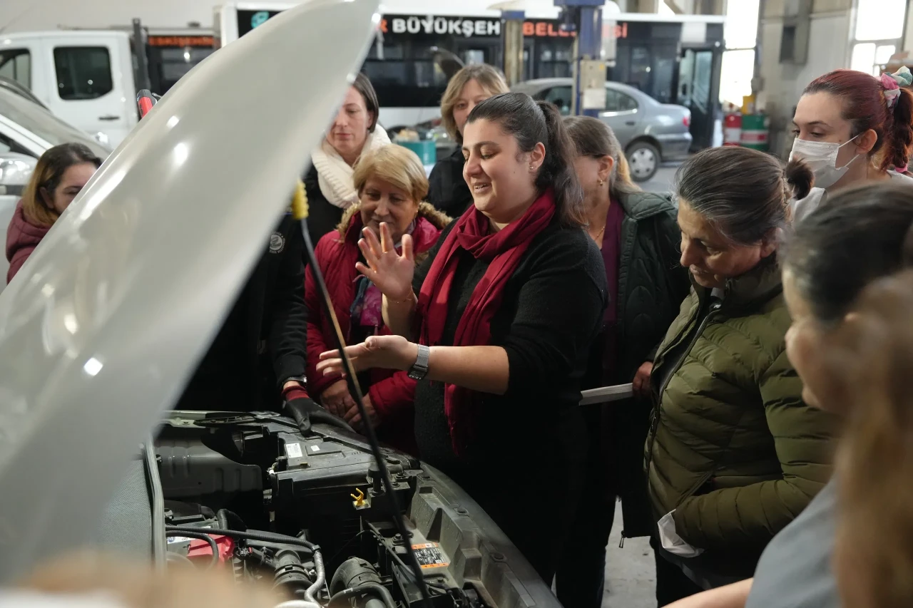 Eşitlik Birimi Sorumlusu Ceyda Söğüt ise dört hafta süren eğitimlerde lastik değiştirme, motor bakımı ve silecek tamiri gibi uygulamalı çalışmalar yapıldığını ifade ederek, kadınların bu alanda güçlenmesini önemsediklerini vurguladı.