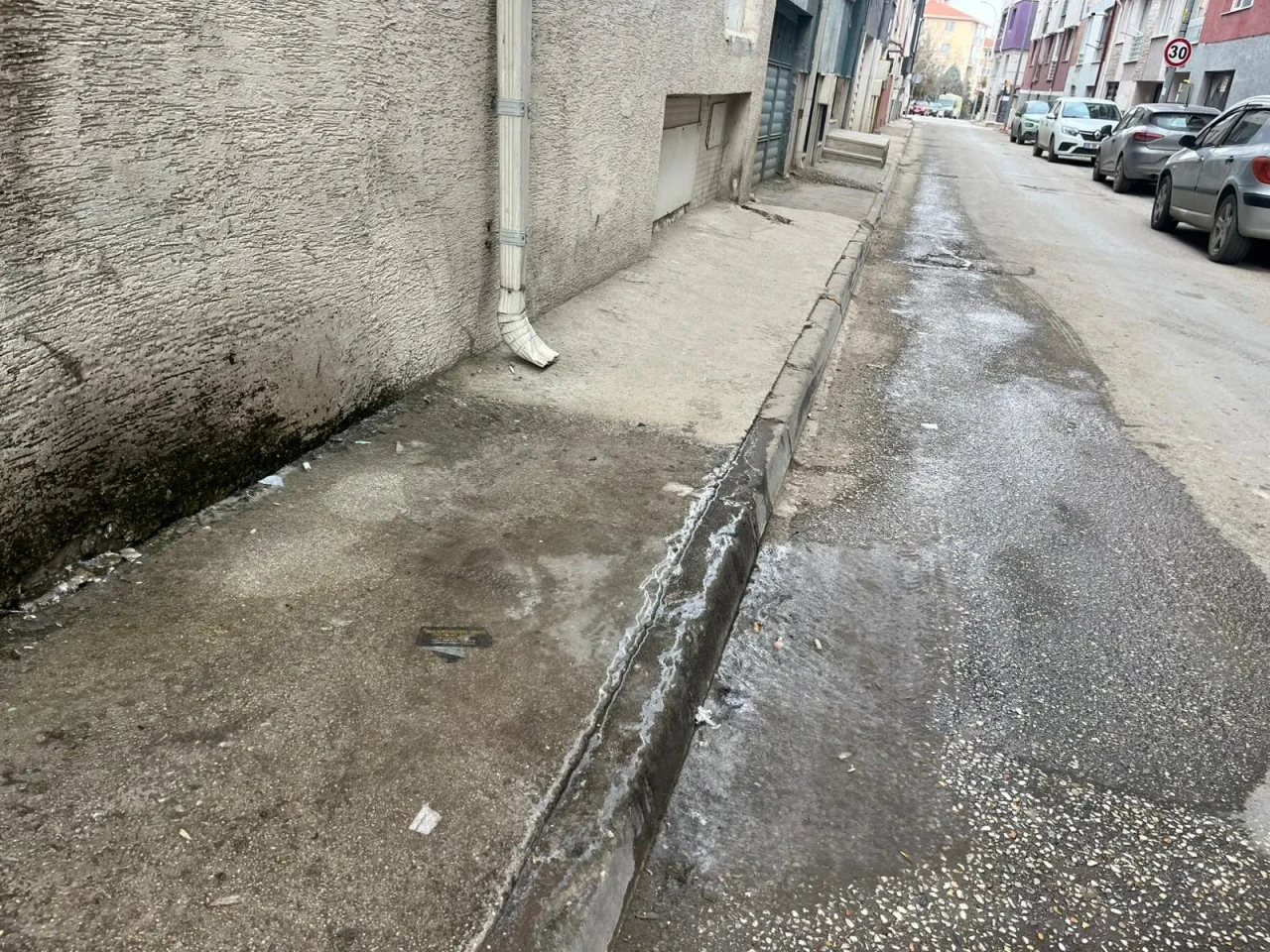Klima suyu nedeniyle kaldırım boyunca oluşan buz tabakası, yoldan geçen yayaların yürümekte zorlanmasına neden oluyor. Özellikle sabah ve akşam saatlerinde yoğun kullanılan sokakta, vatandaşların her an düşme riskiyle karşı karşıya kaldığı görülüyor. Bölgeden geçen yayalar, kaldırımın kayganlığı nedeniyle zaman zaman yola inmek zorunda kalıyor.
