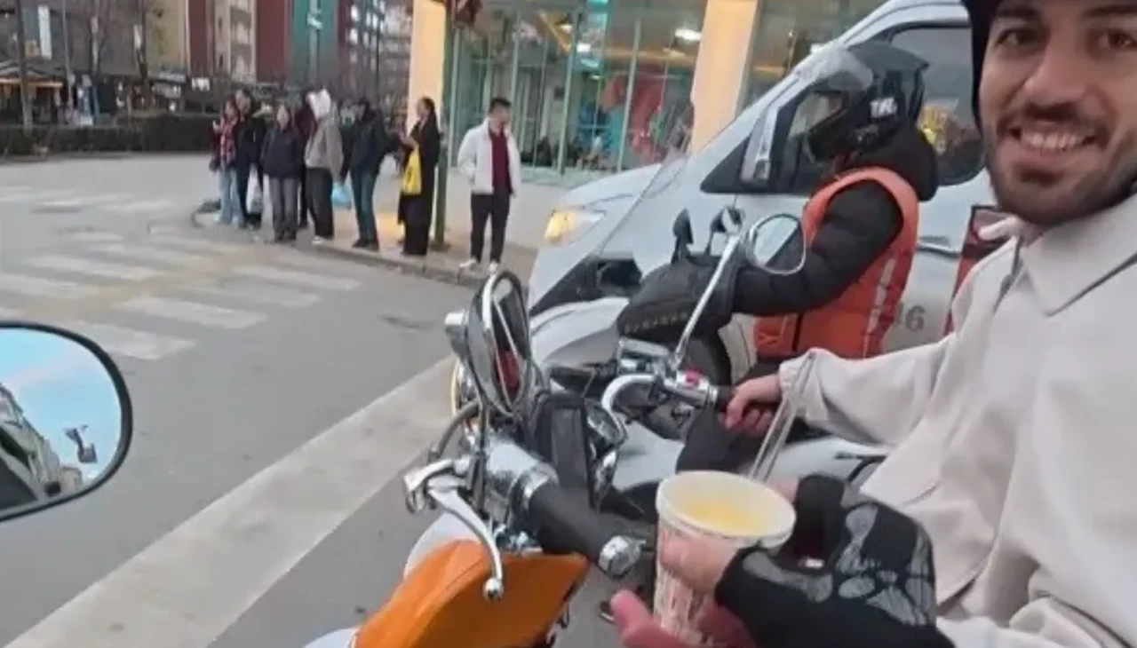 Eskişehir’de çalışan bir kurye, motosikletine yerleştirdiği bir şişe sıcak bozayı karton bardaklarla yaya ve diğer sürücülere ikram etti. Soğuk kış günlerinde kuryenin boza ikramı karşısında şaşıran vatandaşlar sürpriz karşısında mutlu olduklarını dile getirerek teşekkür etti. Cadde ve sokaklarda hem işini yapan kurye, hem de vatandaşların sevgisini kazandı. Yaşananlar ve vatandaşların olumlu ’boza’ tepkisi kuryenin kask kamerasına yansıdı.