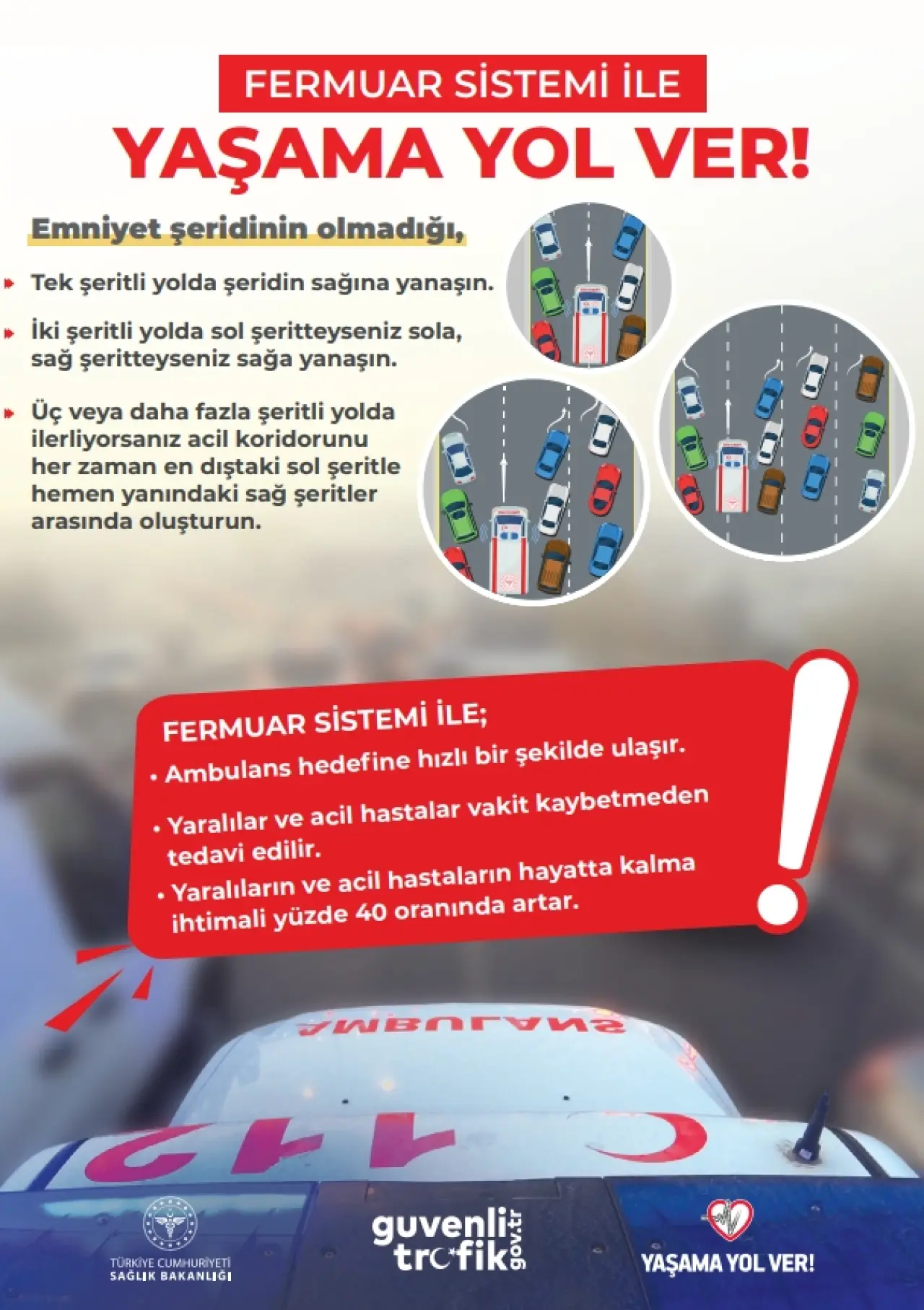 Etkinlikte konuşan Acil Sağlık Hizmetleri Başkanı Op. Dr. Ersin Işıldı, “Fermuar Sistemi ile yaşama yol verilmesi, acil sağlık hizmetlerinin en hızlı şekilde ulaştırılması için hayati önem taşıyor. Bu sistemle, ambulansların daha hızlı ilerleyebilmesi için trafiğin düzenlenmesi sağlanacak” şeklinde konuştu. Işıldak, ayrıca bu sistemin yasallaştırılması ve yaygınlaştırılması için Sağlık Bakanlığı, İçişleri Bakanlığı ve Milli Eğitim Bakanlığı iş birliğiyle çalışmaların sürdüğünü belirtti.